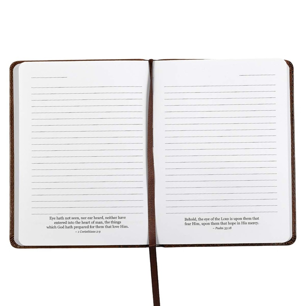 Christian Art Gifts Classic Handy-sized Journal Hope & a Future Jer. 29:11 Bible Verse Inspirational Scripture Notebook w/Ribbon 240 Ruled Pages, 5.7" x 7", Brown Description The I Know The Plans Tawny Brown Faux Leather Handy-sized Journal offers an encouraging message of hope paired with a robust design—the perfect encouragement for the man in your life. The back cover of this tawny brown faux leather journal is heat-debossed with an intricate and continuous wire fence design that wraps around the spine and spills onto the front cover, where it meets a smooth panel with a double row of topstitching. The smooth panel features the heat-debossed sentiment in a multi-font typographical design. "For I know the plans I have for you," declares the LORD, "Plans to prosper you and not to harm you, plans to give you hope and a future." Jeremiah 29:11 Additional topstitching along the edges of the journal adds support to the covers. A brown satin ribbon marker is included to mark your page between the 240 lined pages, each featuring a Scripture verse selected from one of the well-loved Bible versions that include the KJV, NKJV, ESV, NIV, and NLT. A presentation page in the front of the journal lets you add your name or personalize it when you give it as a gift. Put together an inspirational Father's Day gift when you pair the I Know The Plans Tawny Brown Faux Leather Handy-sized Journal with a coordinating checkbook wallet or key ring that your father can take to work or give the ensemble as a teacher appreciation gift to show your gratitude for all his hard work. Heat-debossed wire fence design Tawny brown faux leather Heat-debossed text "For I know the plans I have for you," declares the LORD, "Plans to prosper you and not to harm you, plans to give you hope and a future" Jeremiah 29:11 Flexcover Topstitched edges Handy size 27 lb bond weight paper (slightly thicker than regular stationery paper) Brown satin ribbon marker 240 lined pages Scripture on each page Presentation page Size: 7.2" x 5.4" x .75" (183 x 137 x 19mm) Read more Features: Product Details: Publisher : Christian Art Gifts Publication date : September 1, 2013 Language : English Print length : 240 pages ISBN-10 : 1432108069 ISBN-13 : 69 Item Weight : 0.01 ounces Dimensions : 7.2 x 5.4 x 0.75 inches Best Sellers Rank: #28,734 in Books (See Top 100 in Books) #137 in Journal Writing Self-Help #378 in Christian Self Help #451 in Christian Inspirational #137 in Journal Writing Self-Help Handling We will ship all orders within 3 business day of payment. Delivery We Do Not Ship Outside of the Continental US. Return Policy All items qualify for returns within 30 days of receipt. Buyer is responsible for return shipping on any item that is not damaged. Feedback We take our reputation seriously, we buy and sell online, so we understand the value of trust. If you are unsatisfied with your order, please contact us and we will work with you to resolve it to your satisfaction.