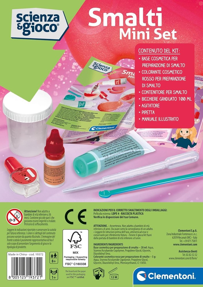 Further Details Title: Clementoni Lab Mini Science Experiment Set, Girl Laboratory, Kit for Making Nail Polishes, Scientific Game 8 Years, in Italian, Made in Italy, Multicoloured, 19372 Condition: New Description: PRODUCT DESCRIPTION A science kit for girls "Science and Game Lab" to discover the science of cosmetics hidden behind nail polish creation. GAME CONTENT: Real cosmetic components, tested and safe, such as the cosmetic base and red dye and all laboratory accessories necessary for testing as well as a nail polish container and instruction booklet. A scientific game that stimulates children's creativity, dexterity and curiosity. During the experimentation, the little ones exercise their logical skills, attention and concentration. The illustrated scientific manual guides to the discovery of the mini nail polish lab by introducing girls to the science of cosmetics, explaining step by step how to carry out experiments and providing many curiosities about this modern science. A women's science laboratory "Science and Game Lab" to bring girls closer to the science of cosmetics and nail polish. Recommended for ages 8 and up. SAFETY WARNING No Warning Needed Language: Italian Item Height: 210mm Item Width: 55mm Item Weight: 818g Brand: Clementoni Color: multi-coloured Item Length: 150mm Material: Plastic Type: Science Kits Dimensions: 15 x 5.5 x 21 cm; 818 g MPN: 19372 SCIENTIFIC MANUAL: The illustrated manual guide to the discovery of the mini nail polish laboratory introducing girls to the science of cosmetics, explaining step by step how to carry out experiments and providing many curiosities about this modern science Nail Polish Laboratory: A scientific kit to discover the science of cosmetics behind the creation of nail polishes GAME BENEFITS: A scientific game that allows you to stimulate the creativity, dexterity and curiosity of girls. During the experimentation, the little ones exercise their logical skills and attention GAME CONTENT: Real cosmetic components, tested and safe, such as the cosmetic base and coloring and all laboratory accessories needed for testing as well as a nail polish container Features: A scientific laboratory for women "Science and Game Lab" to bring girls closer to the science of cosmetics and nail polish. Recommended for ages 8 and up. Missing Information? Please contact us if any details are missing and where possible we will add the information to our listing.