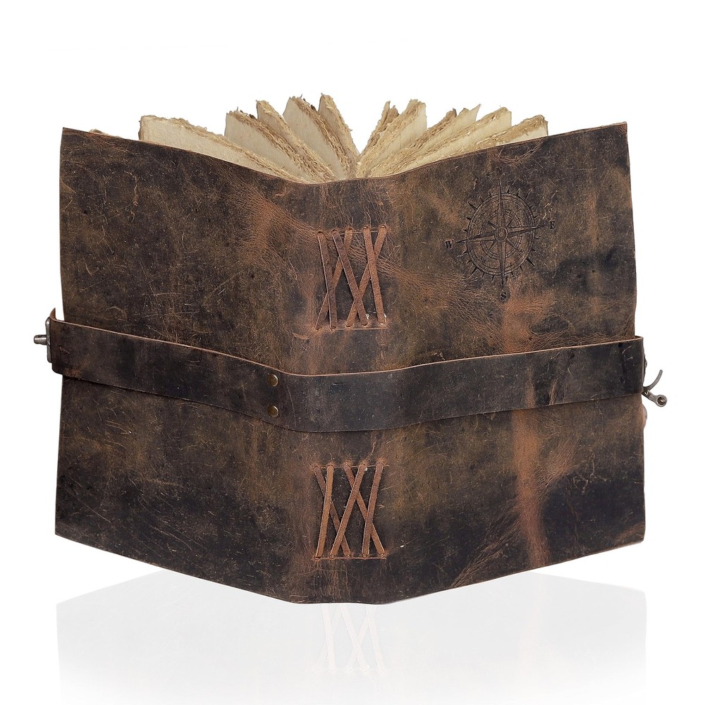 Vintage Leather Journal - Antique Handmade Leather Bound journal with deckle edge paper for Men And Women Made from Full grain buffalo leather this book is handcrafted by artisans working with leather for decades. Unlined Deckle Edge paper 100 sheets/200 pages Counting both sides (Non-Refillable) 100% Handmade Paper which is recycled from cotton and is acid-free and wood-free. Classy String Key closure, Raw Handcut design. Ideal for alternative notebook, notepad, writing notebook, journalists etc.Hunting Logbook, Poetry Work, Journalists, Food Planner, Commonplace Book, Instagram Scrapbook and Bible Journaling. Makes an Awesome Anniversary, Graduation, Valentine Christmas Birthday Gift. Great gift for students, Artists, travellers. ✔️ PERFECT HANDCRAFT JOURNAL - Made from 100% Buffalo Leather with Antique Deckle Edge Paper. This Book Is Hand Crafted by Artisans Working with Leather for Decades. The Color of The Journal Is Very Unique. ✔️ Use Any Kind Of Pen - Write/sketch/doodle on your journal notebook with a Fountain Pen CalligraphyPen, Ball Pen, Brush Pen, Acrylic Colours, Watercolor. IDEAL USE AND PERFECT GIFT – Perfect Use for Business Executive, Poetry Work, Journalists, Craftsman, Writer. A Lovely Treat for Your Loved Ones for An Anniversary, Birthday or Graduation Present, Or for Someone Starting A New Adventure and A Perfect Gift for Those Who Love Vintage One. ✔️ Dimension – (8” X 6” X 1.5”) With Uncut Deckle Edge Paper, Easily Handle Notebook, You Can Fit with Minimum Space, Easily Handle in Long Journey. Once You Have Used It You Will Feel Like You Have the Best Journal in the World. ✔️ BINDING – Binding Is Made by Hand Stitching Which Having Enough Strength That the Paper Never Comes Out. The Journal Made by High Quality Buffalo Leather and Paper Have Been Used Is Vintage Historical Paper Which Is Very Durable. ✔️ OUR GUARANTEE: If for any reason you don’t love the Wanderings vintage notebooks please let us know and we’ll send you a refund - no questions asked. It is as simple as that!