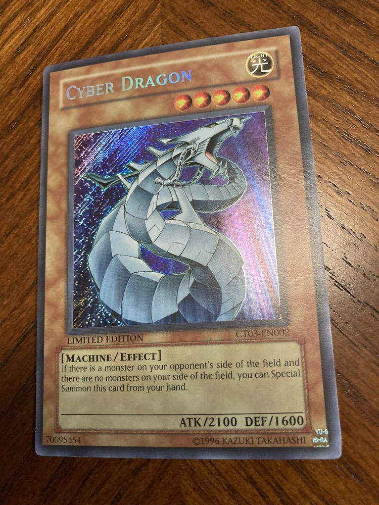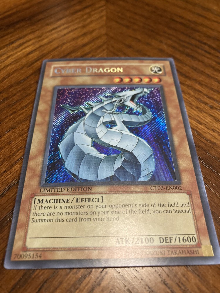 Cyber Dragon CT03-EN002 Secret Rare Limited Edition NM Yu-Gi-Oh!. Refer to pictures for condition. Happy to send more pics if needed. Pictures are of actual item you’ll receive, no stock photos. Will ship immediately after payment is received. Happy to answer any questions you may have. Thank you for looking!