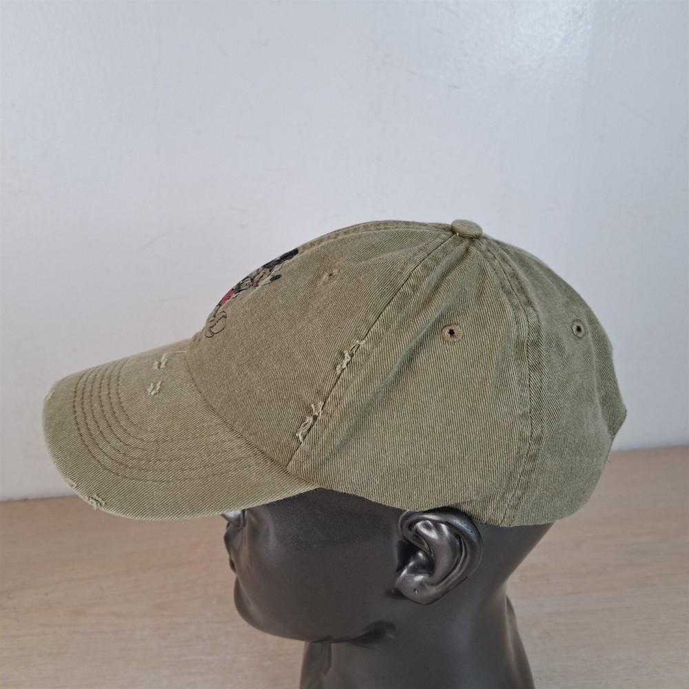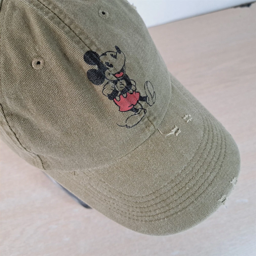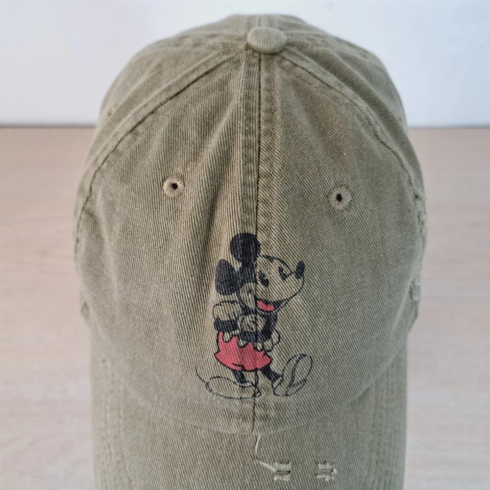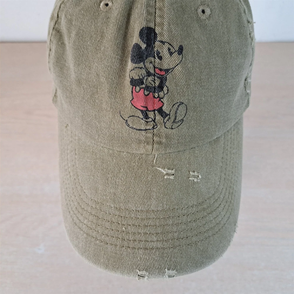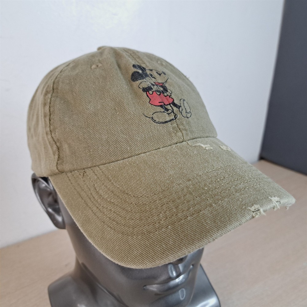 Mickey Mouse Baseball Hat Adjustable Strapback See pictures for exact item and condition details. This hat is in good condition, but does have some signs of use and/or being stored -see pics. A more detailed cleaning could potentially reduce or remove condition issues. Items are pre-owned/used condition and may contain signs of wear, stains, blemishes, wrinkles, & creases. All of our hats receive a basic cleaning and disinfecting. Please verify fit prior to purchase. Mannequin head circumference is approximately 22in/56cm. Shipped in a box to maintain shape. Thank You! Please save our store in your favorites and visit often. Hundreds of new items added weekly. ```````````````````````````````````````````````````````````````````````