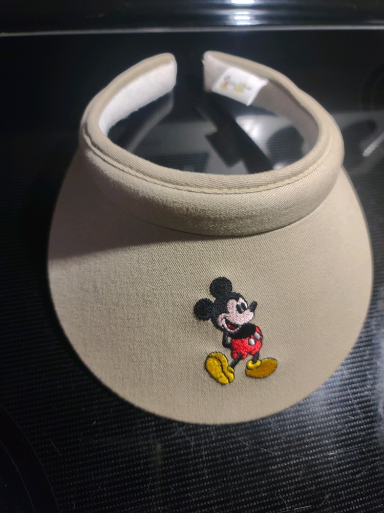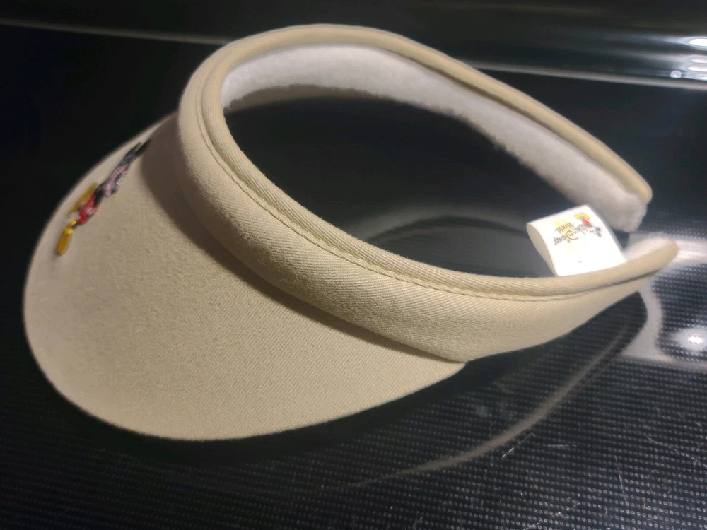 DISNEY PARKS Mickey Mouse Beige Tan Cotton Visor Cap Golf Sun Walt Disney World. Condition is Used. Shipped with USPS Ground Advantage.