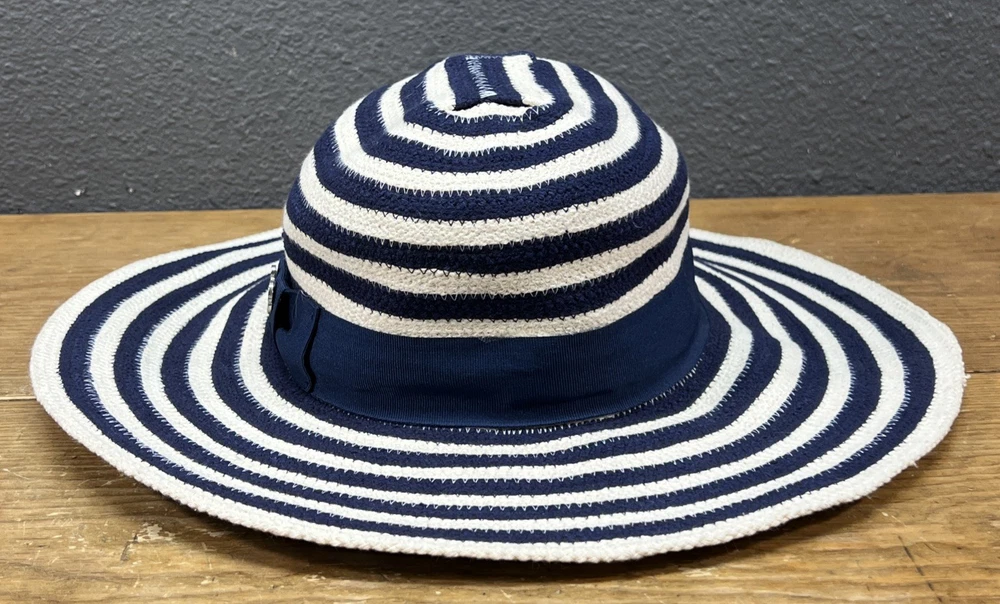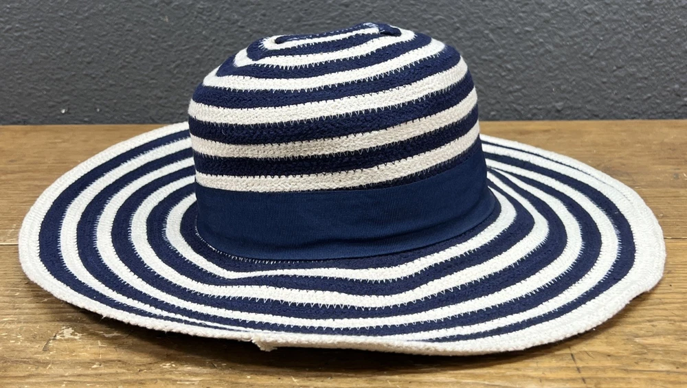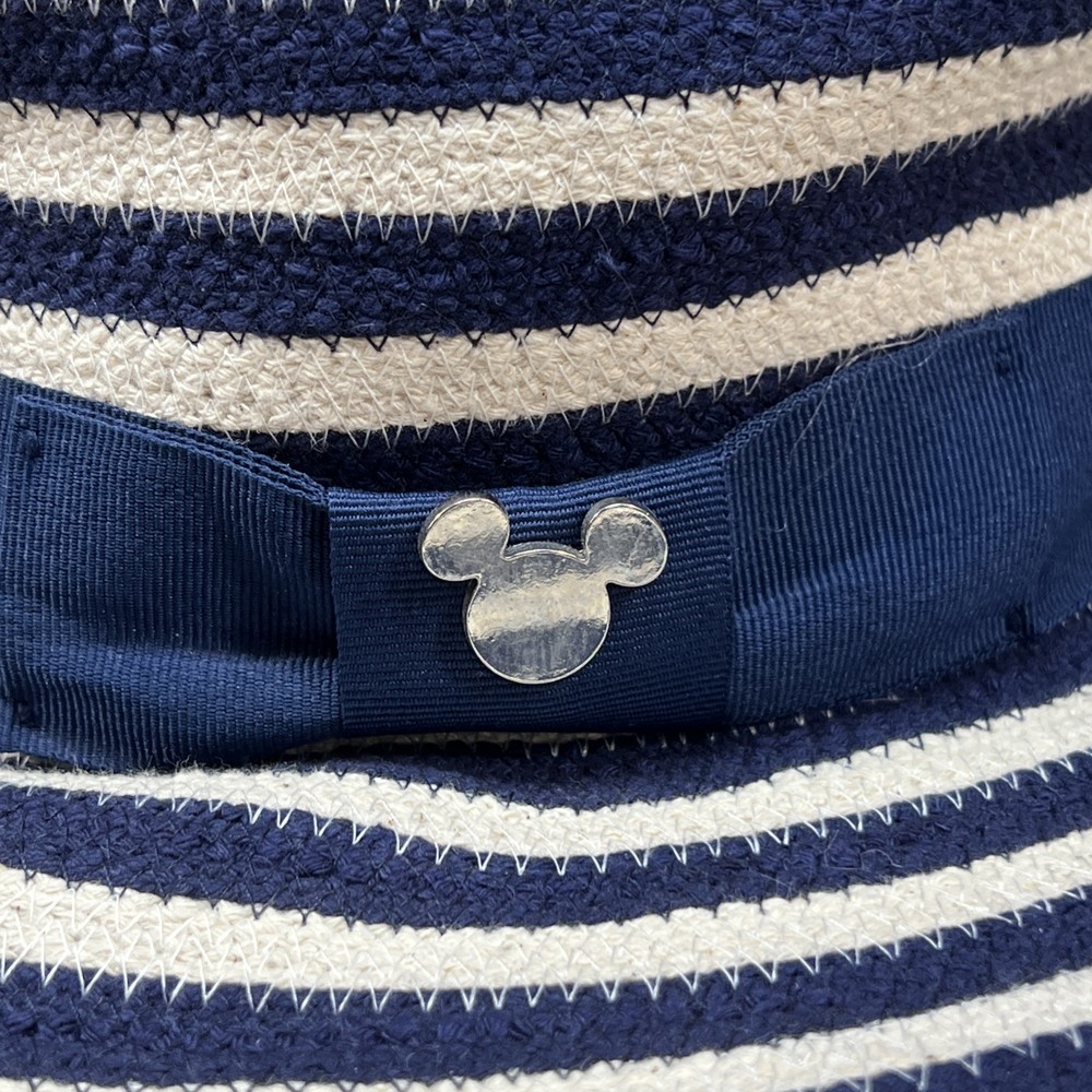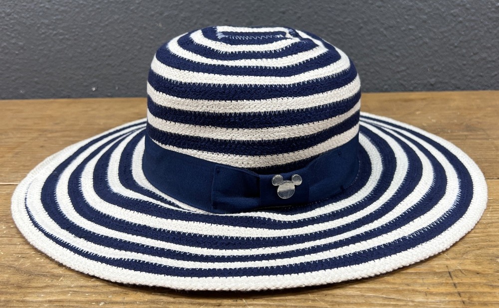 Get ready to hit the beach with this stylish Disney Parks Mickey Mouse Sun Hat! The wide brim offers great protection from the sun, while the blue and white striped design adds a fun touch to your outfit. Featuring Mickey Mouse's iconic floppy ears, this hat is perfect for any Disney fan. Made from a comfortable blended fabric, this hat is suitable for wearing during any season. Whether you're going to a wedding, traveling, or just enjoying a casual day out, this hat will add a touch of charm to your look. Perfect for women of all sizes, this Disney Parks Authentic sun hat is a must-have accessory for any beach-goer. No tags. Never worn.