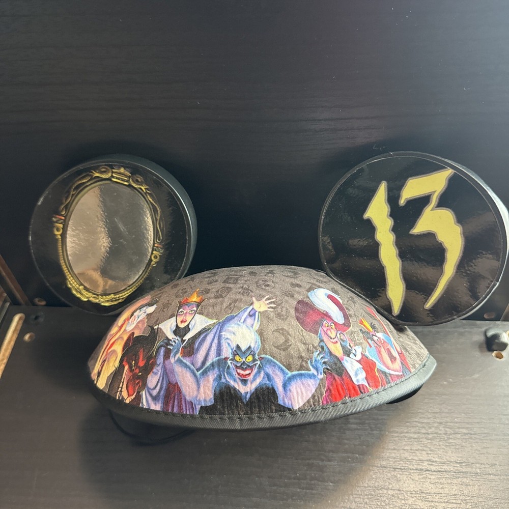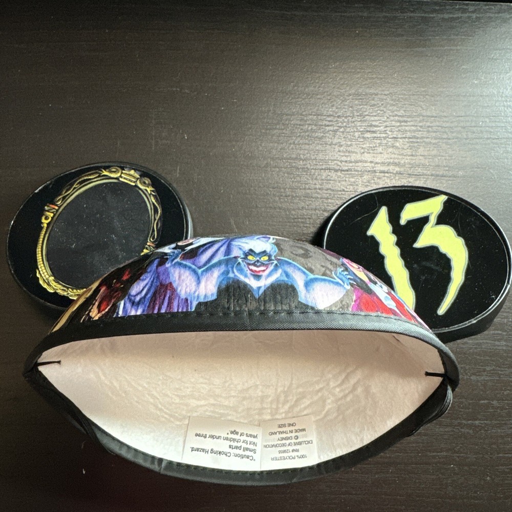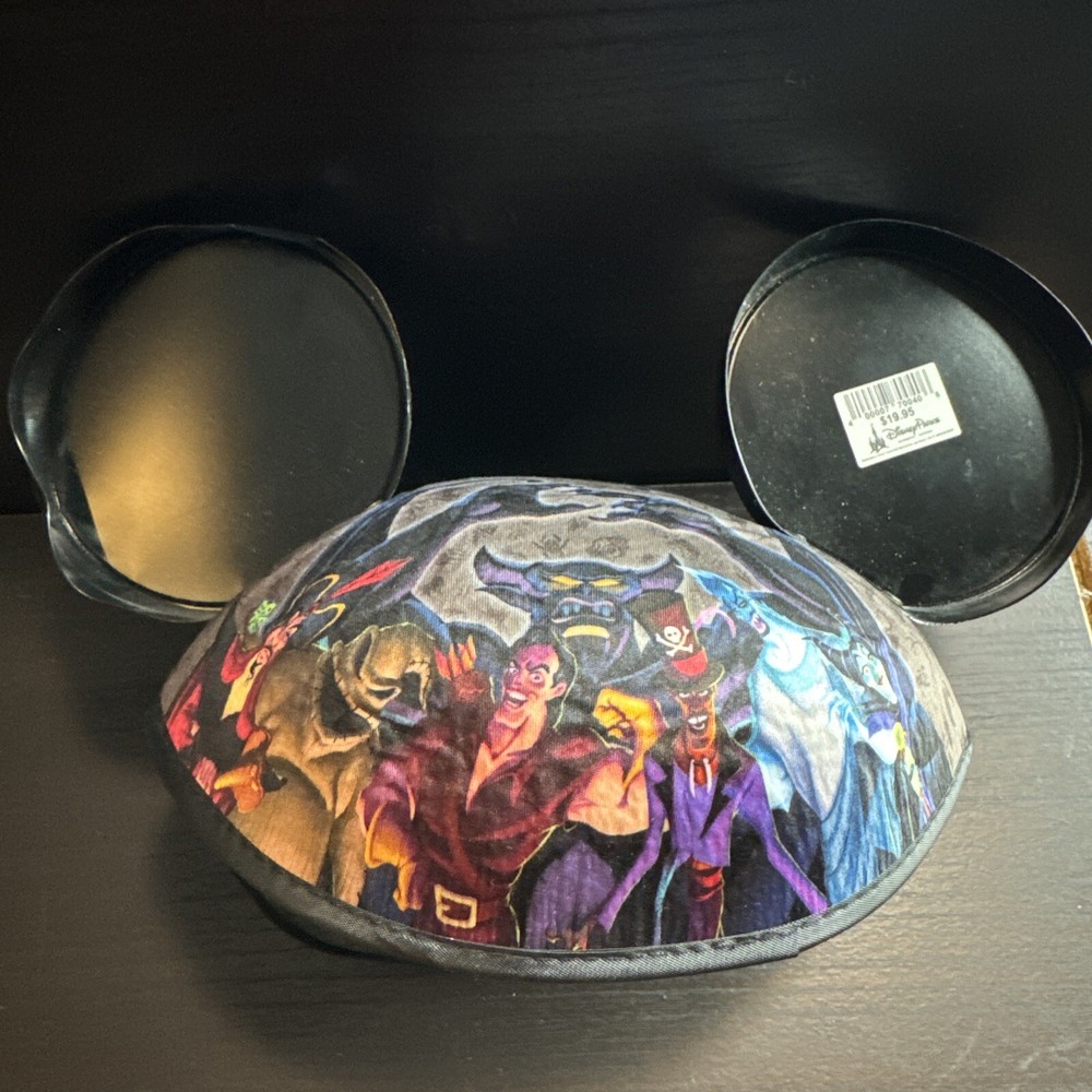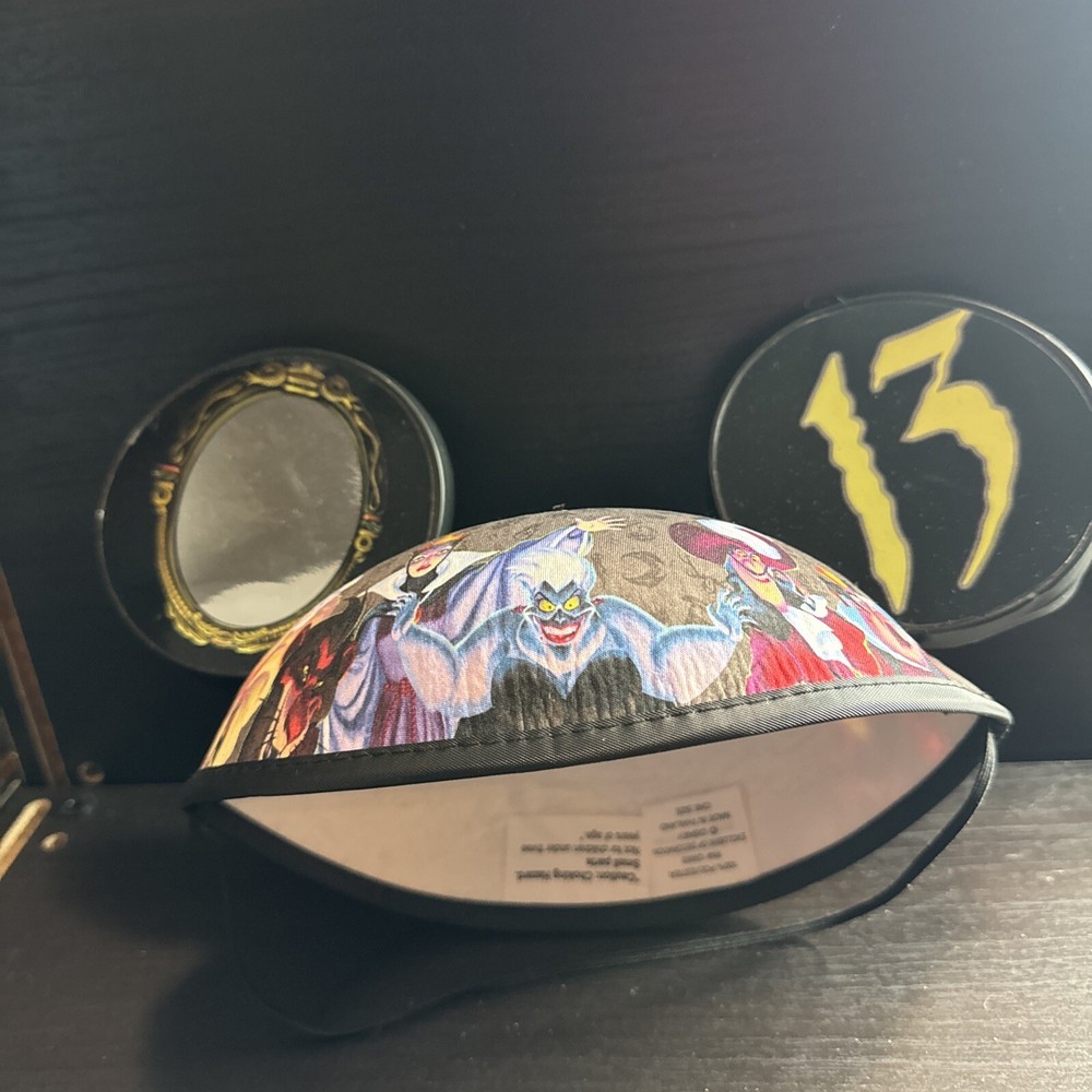 This brand new Disney Villains Ear Hat is a rare find from the 13 Reflections of Evil Pin Trading Event at Walt Disney World in 2013. The hat is adorned with glow-in-the-dark accents and is suitable for both men and women. It is the perfect addition to any Disneyana collection, especially for fans of the Disney Villains franchise. The hat is a must-have for those who attended the event or for collectors who missed out on the opportunity. This item is a true gem and is sure to be a conversation starter among Disney enthusiasts.