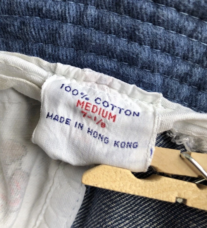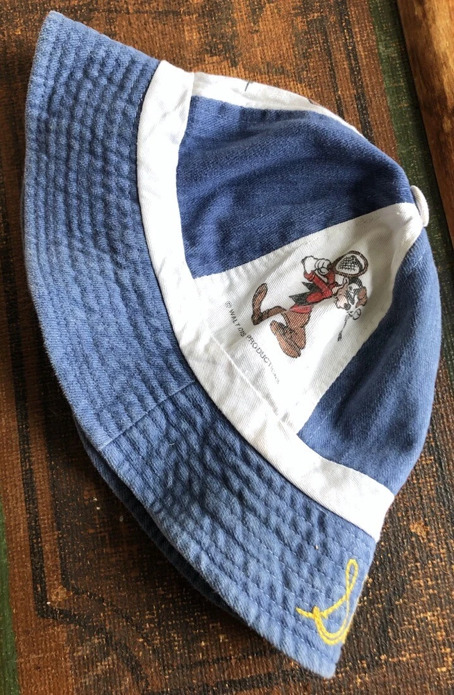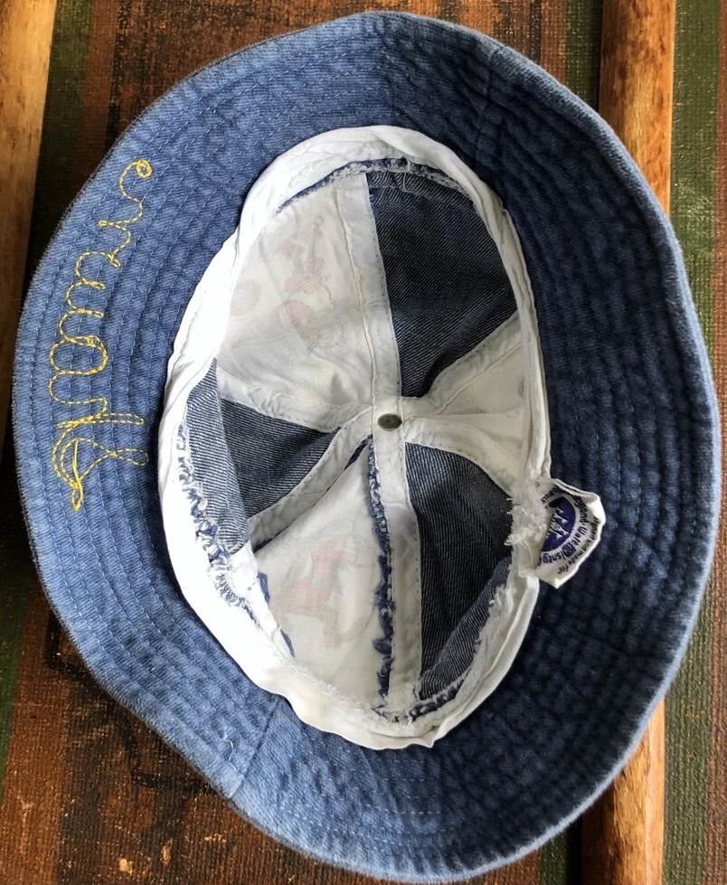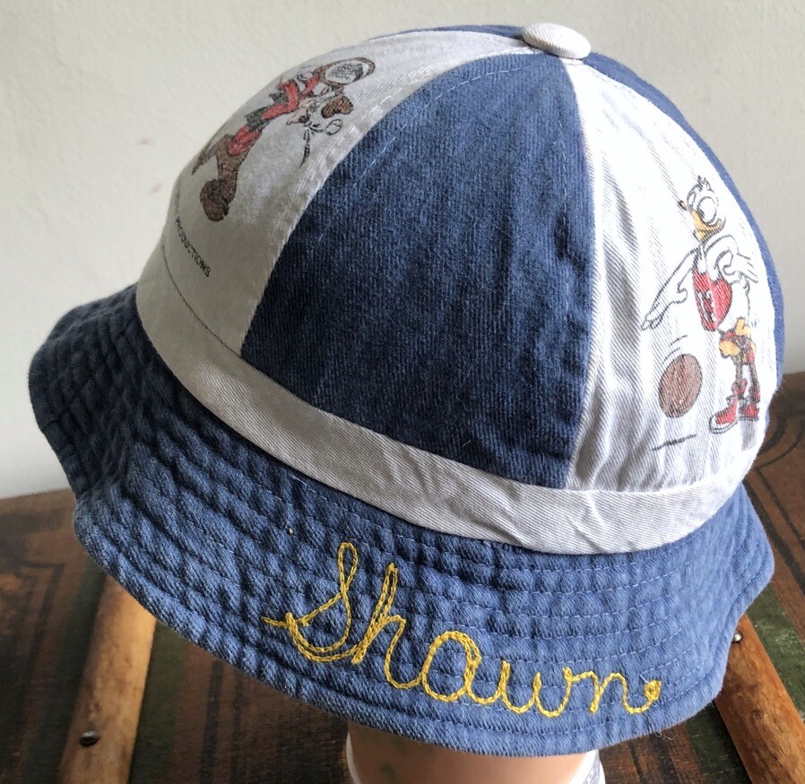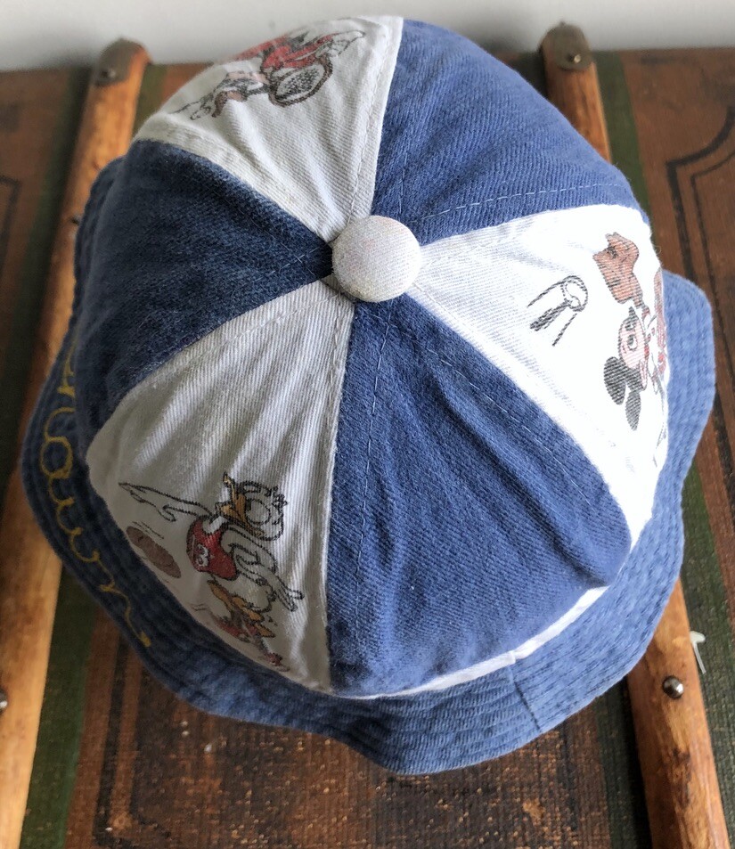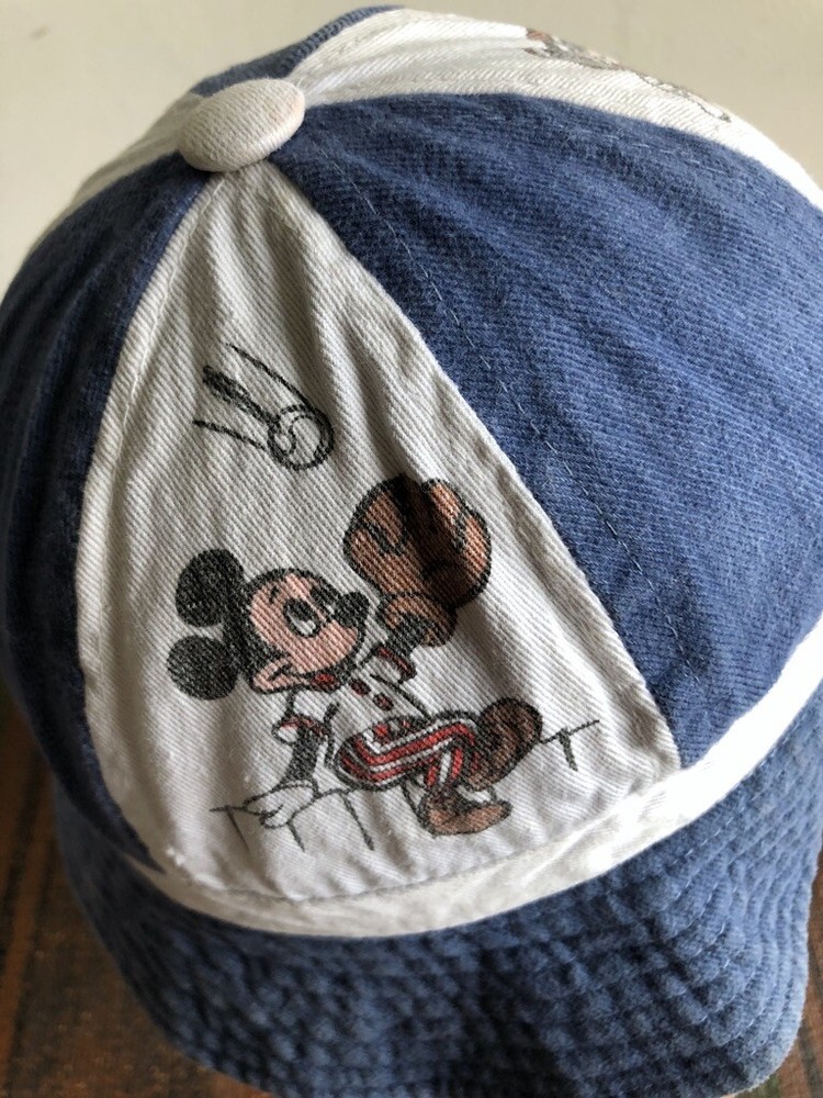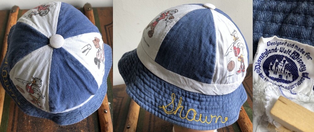 DISNEYLAND WALT DISNEY HAT BEANIE CAP DENIM WHITE COTTON SPORTS MICKEY M 7 1/8 DISNEYLAND WALT DISNEY HAT BEANIE CAP DENIM WHITE COTTON SPORTS MICKEY M 7 1/8 Description This is an early '80s Disneyland Walt Disney World / Walt Disney Productions beanie cap, denim panels alternating with white ones with Mickey, Goofy, and Donald playing baseball, tennis, and basketball. Marked size medium / 7 1/8". Made in Hong Kong. Fair to good used condition: light to moderate wear, some wash fading, a few minor spots. Has Shawn embroidered on rim. Measures 7 1/2" long, from top center of hat to edge of brim. 22 3/4" band circumference. Shipping I ship within one business day. International buyers: customs are the responsibility of the buyer. Please respect my policy not to list merchandise as gifts on customs forms. Note: If your location is any one of the following countries, I can ship more cheaply (1st-class Intl.) than will be indicated by my shipping calculator. Please message me to get that rate: Austria, Belgium, Brazil, Chile, Croatia, Cyprus, Denmark, Estonia, Finland, Germany, Gibraltar, Greece, Hong Kong, Hungary, Iceland, Indonesia, Israel, Italy, Japan, Latvia, Lebanon, Lithuania, Luxembourg, Malaysia, Malta, Mexico, Netherlands, New Zealand, Norway, Poland, Portugal, Russia, Saudi Arabia, Serbia, Singapore, Slovak Republic, Slovenia, Spain, Switzerland, Thailand, Turkey, Vietnam. Calculator should show correct 1st-class option to Australia, Canada, France, Germany, Great Britain and Northern Ireland. See my other listings; happy to combine shipping. See my other listings; happy to combine shipping. Returns Welcome My return policy: Returns are welcome as long as the item is returned unused. If a vintage item *is* used and then returned (i.e., rented), a 20% restocking fee will apply. (***New/old deadstock items that are used are NOT returnable.***) In the case of item not as described (or reasonable difference of opinion about my description), I always favor the buyer and issue a full refund, including return shipping. In case of wrong size or a changed mind, I'm still happy to accept a return initiated within 3 days, but shipping both ways is up to the buyer. Please be especially careful about measurements, etc. Vintage clothing items are much smaller than contemporary ones. Thanks! Note Everything I sell is 100% smoke-free unless noted otherwise. I welcome any and all questions! Almost all my items are vintage and therefore usually show light wear and/or signs of aging. Please ask questions if you're concerned about a particular aspect. Thanks for looking. Listing and template services provided by inkFrog