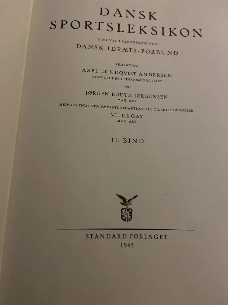 This is a Danish Sports Encyclopedia Volume II published by Standard Forlaget in 1945. It is bound in leather and features information on various sports topics written by multiple authors in the Danish language. The book is an original and of historical significance. It would be a great addition to any antique or book collection.