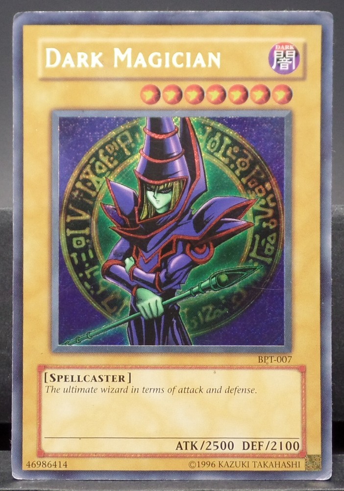 This listing is for the pictured copy of Dark Magician, a secret rare normal monster card originally obtained from collectible tins released in 2003. While the front of this card is nice and pretty, the back of the card's printing is worn. Please see the listing pictures. Card ships sleeved in a toploader with tracking. If you have any questions please let me know. Thank you!