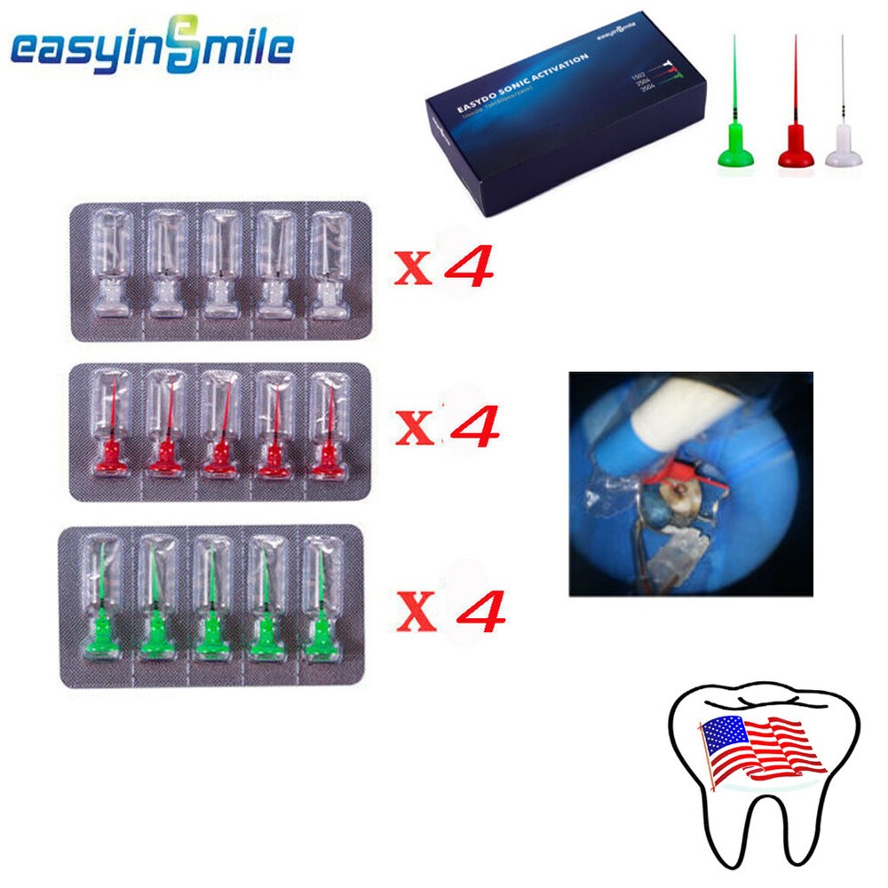 Needle Tips: 2/15 20 PC 4/25 20 PC 4/35 20 PC Notice 1) Remove the needle tip of EasyDO Activator. If your treatment process is over, please leave it for medical recycling. 2) Please put exhaustively discharged battery into the recycling box. 3)Do not submerge the unit in water. 4)Do not autoclave the unit. NOTE: The package does not include the endo irrigator in the pictures show. Dental Sonic Endo Activator Tips For Root Canal Endo Activator Instrument Package List: Needle Tips: 2/15 20 PC 4/25 20 PC 4/35 20 PC Introduction for activitor: 1. Indications For user The Easydo Activator system uses technology of sonic energy for root canal treatment. The driver work with the Hand device, motor and needle tip to provide power for tip oscillation and vibration. Evidence-based endodontics has shown that cavitation and acoustic streaming can improve debridement and the disruption of the smear layer and biofilm. The Activator helps the fluids streaming enter the Pulp Chamber, Root Canal, Lateral canal, Connection of inter-root canal and root apex to ensure deep cleaning and sterilization of root canal. It is beneficial to complete the 3D filling of the root canal and ensures long-term success. 2. Notice 1) Remove the needle tip of EasyDO Activator. If your treatment process is over, please leave it for medical recycling. 2) Please put exhaustively discharged battery into the recycling box. 3)Do not submerge the unit in water. 4)Do not autoclave the unit. NOTE: The package does not include the endo irrigator in the pictures show. About FDA: The sale of this item may be subject to regulation by the U.S. Food and Drug Administration and state and local regulatory agencies. If so, do not bid on this item unless you are an authorized purchaser. If the item is subject to FDA regulation, We will verify your status as an authorized purchaser of this item before shipping of the item. COMPANY:Easy Intelligence medical instrument co.,ltd. Manufacturer:EASYINSMILE(USA)INTERNATIONAL CORP. Address:Room1001,Golden Mountain Industrial Park, No. 28 Yinshuang Road, Yuelu District 410000 Changsha China Payment Shipping About FDA: Feedback FAQ Payment ☆ PayPal payment is easy and safe. ☆ Please make within 7 days after we accepted your offer or auction ended. ☆ We’ll cancel the order, if you didn’t make a payment within 14 days or didn’t leave us any message. ☆ Welcome to contact us, if you have any problems with the order. Shipping ☆ International Shipping to worldwide. ☆ Tracking information of your parcel is available. If you don't know how to track it, please contact us. ☆ Import duties, taxes and charges are not included in the item price or shipping charges. These charges are the buyer's responsibility. ☆ Please check with your country's customs office to determine what these additional costs will be prior to bidding/buying. ☆ 5-7 days Of Fast shipping from US office for the USA buyers and the other countries which can provide standard logistics from China . If you didn’t receive the item within 2 weeks, please contact us. We’ll check it for you. ☆ About 20-40 days in generally for the countries which can not provide Standard shipping. Please check the shipping information online or leave us a message, if you didn’t receive the parcel within 28 day. please leave message to us. ☆ We have local warehouse in the USA, AU and UK , you can go to your local website to purchase and we'll ship for you from the local warehouse, if they are in stock for local warehouse. About FDA: About FDA: The sale of this item may be subject to regulation by the U.S. Food and Drug Administration and state and local regulatory agencies. If so, do not bid on this item unless you are an authorized purchaser. If the item is subject to FDA regulation, We will verify your status as an authorized purchaser of this item before shipping of the item. COMPANY:Easy Intelligence medical instrument co.,ltd. Manufacturer:EASYINSMILE(USA)INTERNATIONAL CORP. Address:Room1001,Golden Mountain Industrial Park, No. 28 Yinshuang Road, Yuelu District 410000 Changsha China Phone:0086-18373188632 Feedback ▷ We always go for 100% customer satisfaction. Positive feedback means a lot to us. ▷ If you have any queries, please contact us via eBay. We will reply you as soon as possible. ▷ We will appreciate it if you email us before leaving any negative feedback. If there is any problem, we can work together to resolve it . FAQ Q: Do you ship the parcel with a tracking number? A: We always ship the items with a tracking number and you can check the shipping information online. Q: I’m in the US. When does the parcel come? A: About 5-7 days in generally by USPS. You can contact us to check the shipping information, if you didn’t get it in 2 weeks. (Sometimes will deliver in the mail box ) If you want to get it fast, you can choose the fast optional. Q: I’m an international buyer. How long does the parcel reach my address? A: About 18-28 days in generally. You can leave us a message where you are, we can check it for you. Q: Why does the parcel return back to the sender? A: Sometimes the parcel was in the local post office for a long time and unable to delivery, or unclaimed, or an ambiguous delivery address, or wrong delivery details. The parcel will be back to us. Do not worry. If you didn’t receive the parcel, we can resend or refund you as your request. Q: Why does your price more expensive than others? A: We always believe that the price fit the quality. And we believe that better quality and better service will make you and your customer more satisfied. Q: I received the wrong items. What happened? A: Please do not worry. Please contact me direclty. We’ll help you. Q: The item damaged on arrival. Could you please resend/refund me? A: Yeah, friend. We can refund/resend. Not forget send us a photo to check.