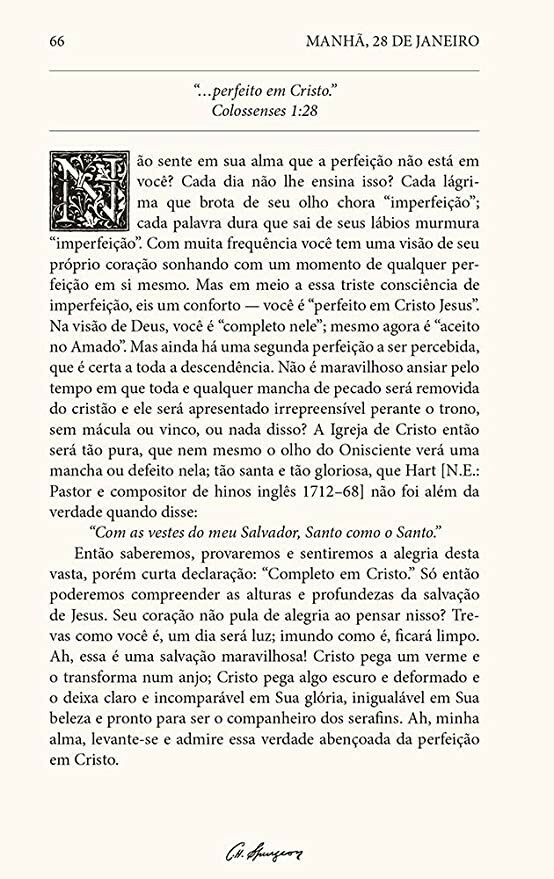 Este devocional é uma bênção para quem busca profundidade espiritual! Com reflexões matinais e noturnas ricas em sabedoria, Spurgeon conduz o leitor a uma jornada diária de fé e aprendizado. A linguagem atualizada facilita a compreensão, e a biografia do autor enriquece ainda mais a experiência. Perfeito para quem deseja começar e terminar o dia com inspiração bíblica. Recomendo muito!