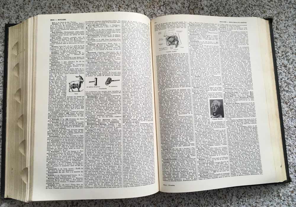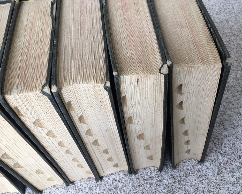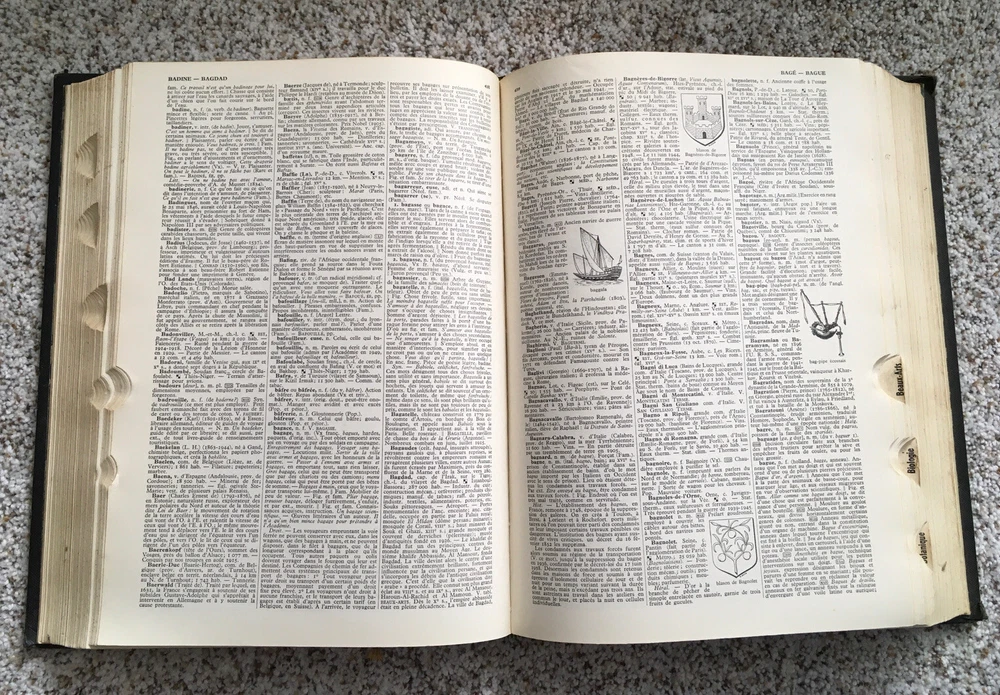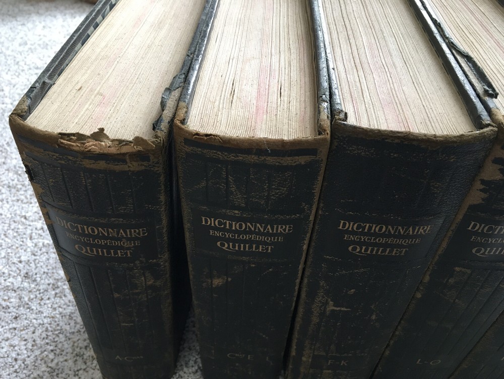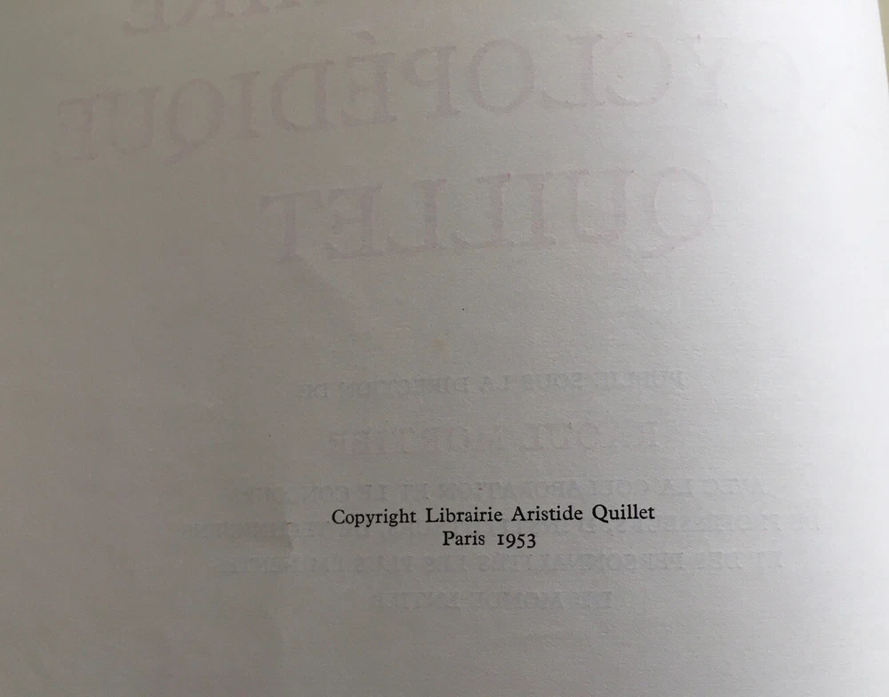 Dictionnaire Encyclopedic Quillet Full IN 6 Volumes - II, III, IV - 1953 A-Z. 6 volumes used encyclopedias in French writing. The pages themselves seem cleaned with no writing nor highlighting noticed. Some occasional tanning. The covers are worn but still very strong, with some marks, tears, scratches, worn leather. Please see photos. The knowledge is heavy ,judging by the weight of this wonderful set.