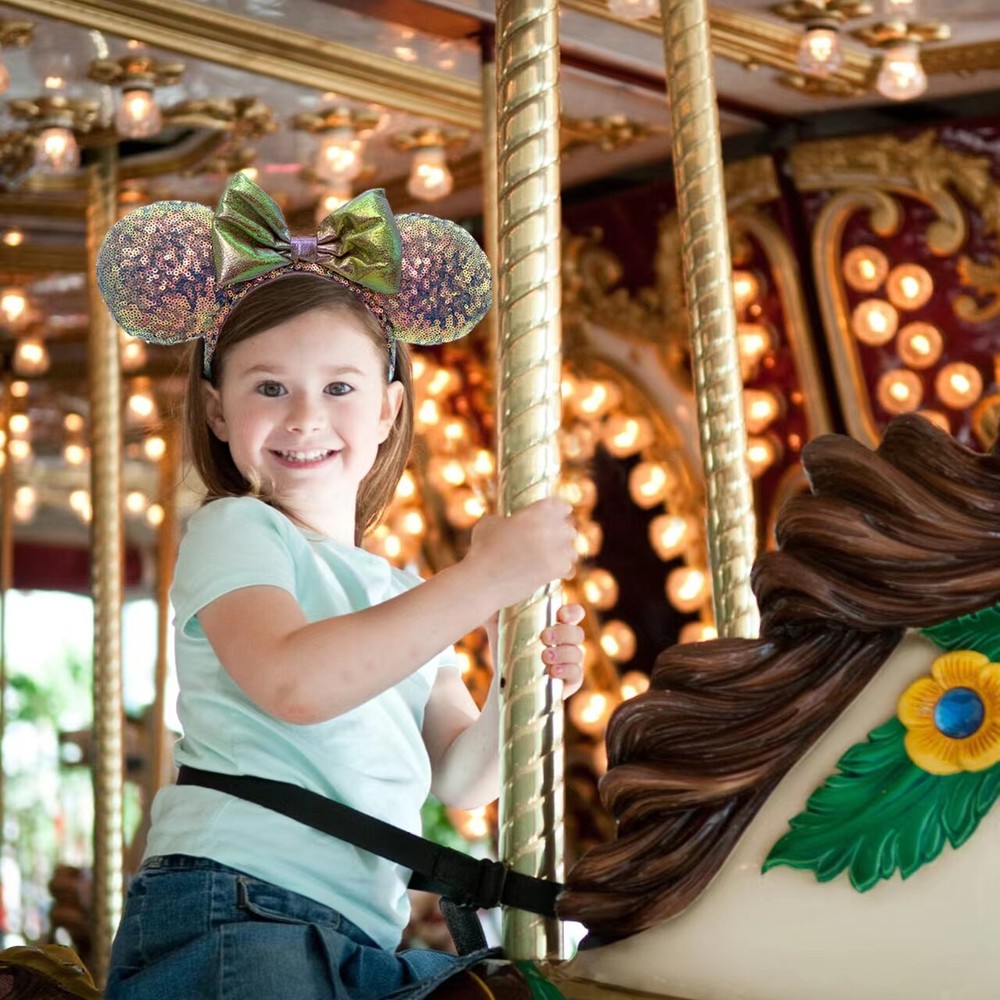 Absolutely love these iridescent Minnie ears! The pink shimmer is stunning, and they fit comfortably on both kids and adults. Perfect for Disney fans—lightweight, high-quality, and brand new. Shipping was fast, and the color is even prettier in person! A must-have for any park visit or collection.