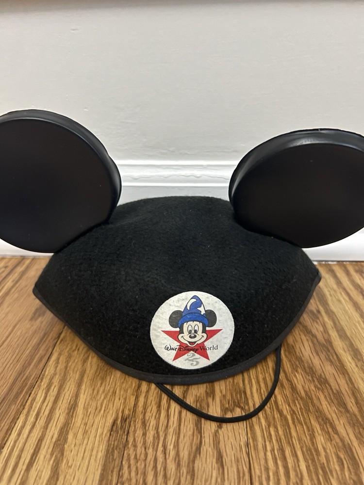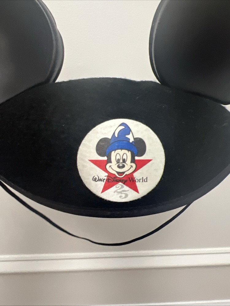 Celebrate a magical moment with the Disney EARs Hat, commemorating the 25th Anniversary of Walt Disney World. This special edition features the iconic Mickey Mouse ears. Crafted in the United States, the hat is designed for unisex wear and boasts a versatile black color that makes it a stylish accessory for any Disney enthusiast. The hat is a collectible item that fits well within the Disneyana realm, particularly for those who appreciate contemporary pieces from 1968 to now.