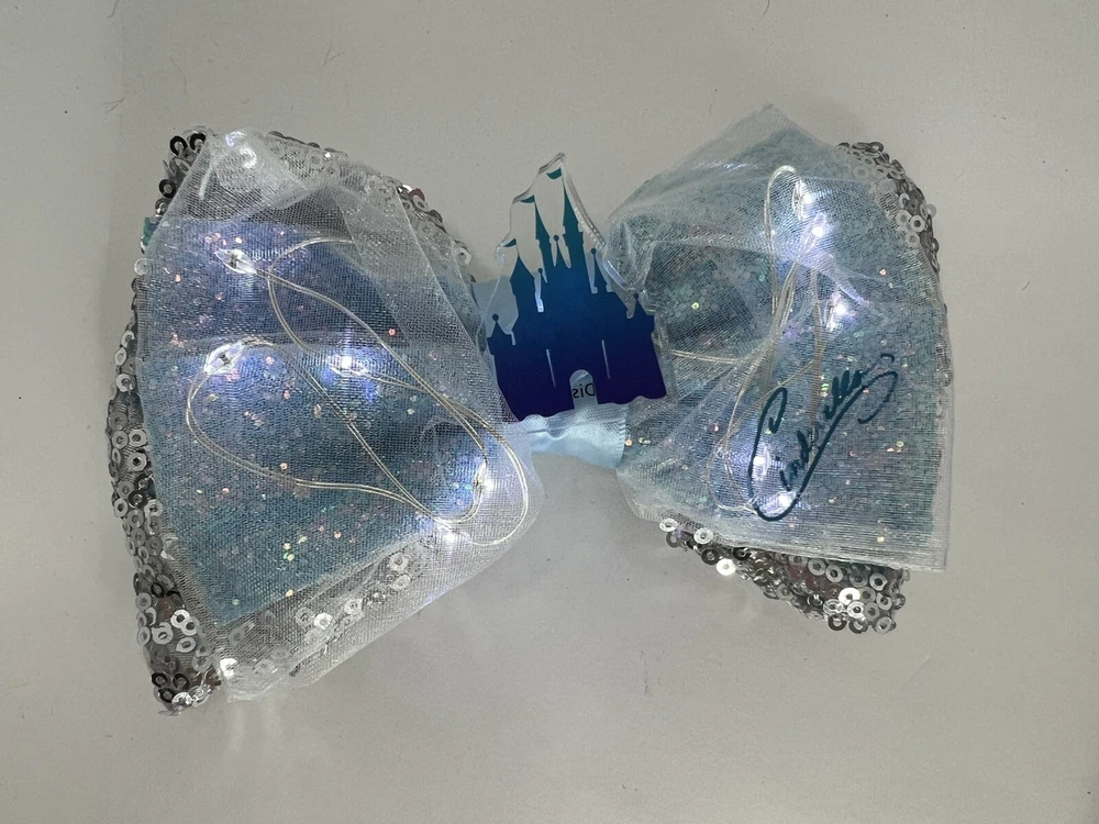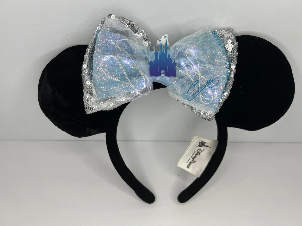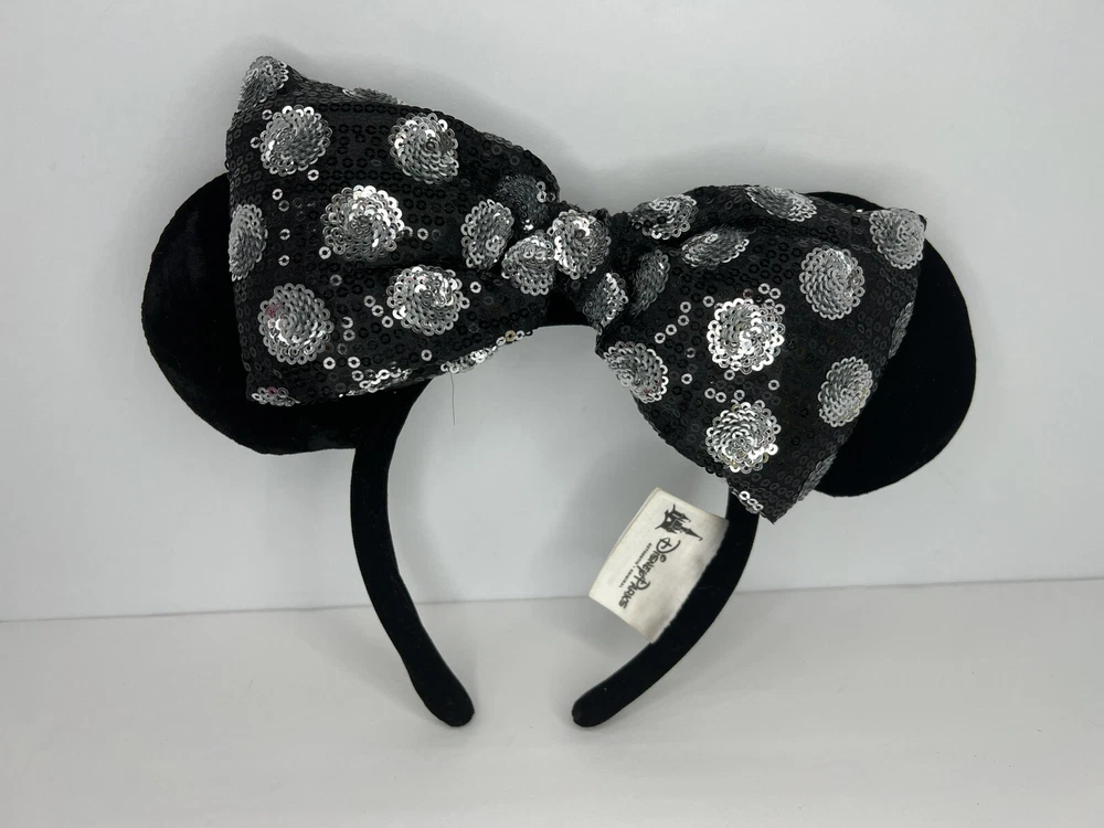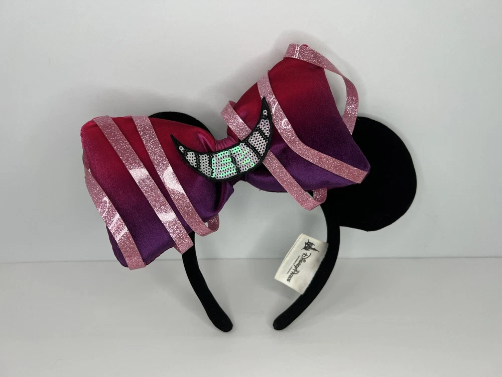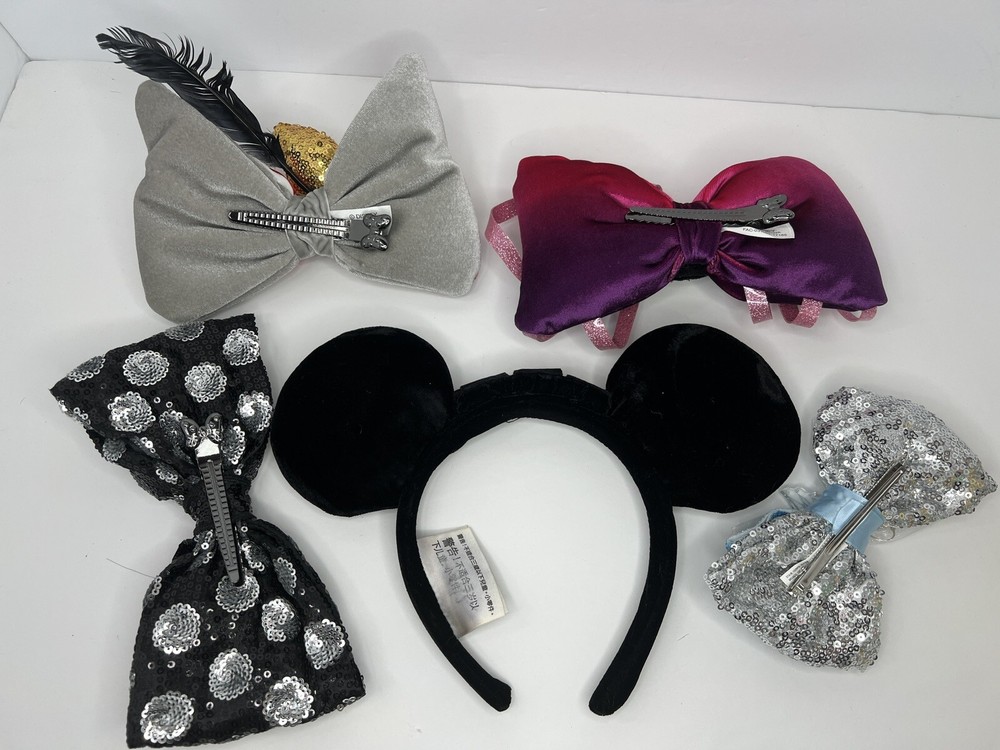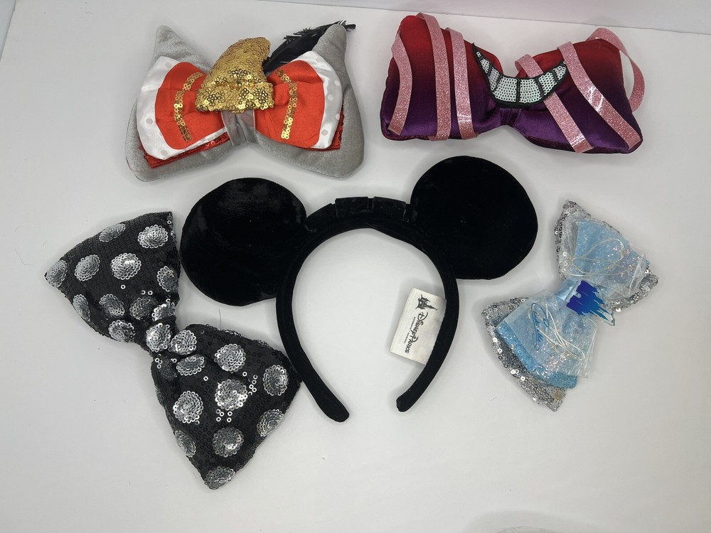 Disney Parks Velvet Black Ears Interchangeable Bows include: - Dumbo - Cheshire Cat Alice in Wonderland - Standard Black and Silver Sequin - Cinderella Castle Light Up Stored and Shipped in dust proof protective package. Stored in a pet-free room. Smoke-free home. SHIPPING: This will ship in a recycled box or poly mailer I will mail your item within three (3) days after your payment is received. Items will be shipped to your eBay profile address only. Please confirm your address on your eBay profile before you bid on our item. Delays may occur due to weather and other restrictions beyond my control. Tracking numbers will be provided by eBay. RETURN POLICY: No returns will be accepted. All sales are final. Please make sure to read all descriptions and bid accordingly. Take a look at all the pictures I have provided. Item pictured is the item you will receive. If you have any questions, send a message and I will respond ASAP. QUESTIONS: If you have any questions, please reach out. I will be glad to provide any additional information prior to your bidding. THANKS: I appreciate your business. Thank you! INV: 06-2382