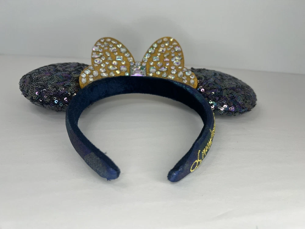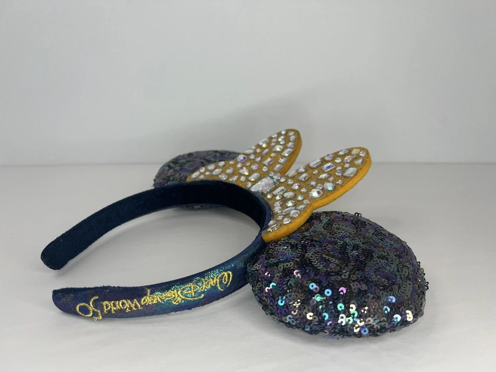Disney Parks Walt Disney World WDW Ears Part of the 50th Anniversary Collection Jeweled Rhinestone Bow Sequined Ears Minnie Mouse Headband Missing two rhinestones on top (see photo) Stored and Shipped in dust proof protective package. Stored in a pet-free room. Smoke-free home. SHIPPING: This will ship in a recycled box or poly mailer I will mail your item within three (3) days after your payment is received. Items will be shipped to your eBay profile address only. Please confirm your address on your eBay profile before you bid on our item. Delays may occur due to weather and other restrictions beyond my control. Tracking numbers will be provided by eBay. RETURN POLICY: No returns will be accepted. All sales are final. Please make sure to read all descriptions and bid accordingly. Take a look at all the pictures I have provided. Item pictured is the item you will receive. If you have any questions, send a message and I will respond ASAP. QUESTIONS: If you have any questions, please reach out. I will be glad to provide any additional information prior to your bidding. THANKS: I appreciate your business. Thank you! INV: 07-2374