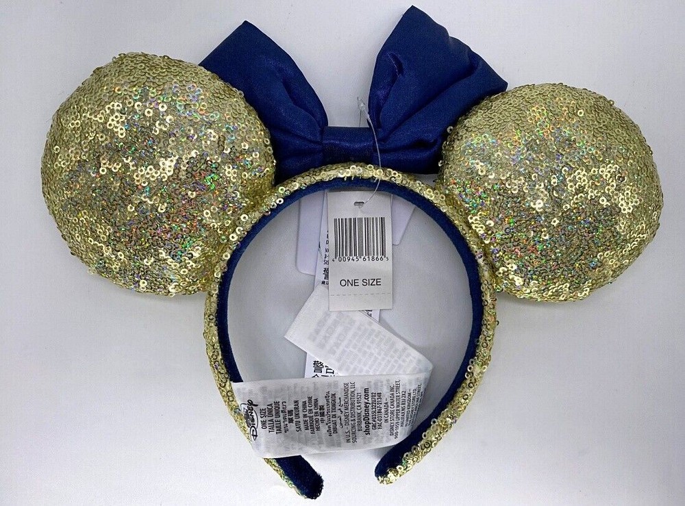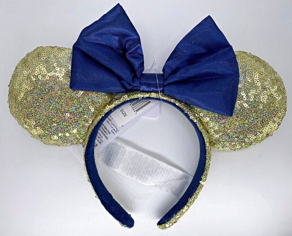 Walt Disney World 50th anniversary EARidescent headband ears Disney Gold shimmer with blue satin bow WDW 50th Anniversary Minnie Mouse headband ears 2022 Brand New with tags Comes from a smoke-free and pet-free home Check out my other listings for more great Disney items!