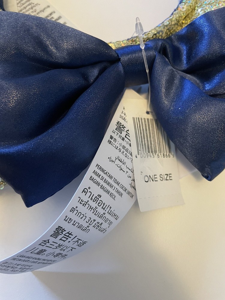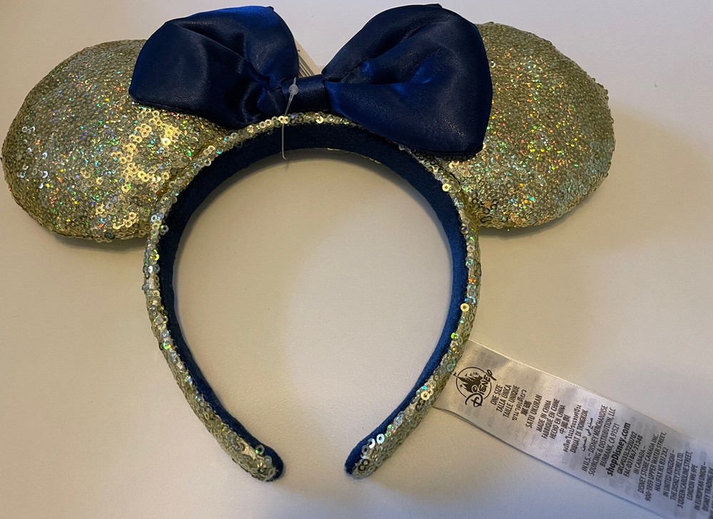 Brand new with tags. Shimmery gold ears with dark blue bow.