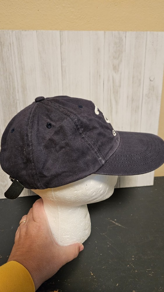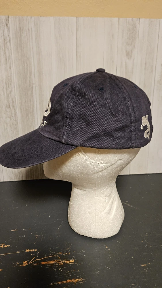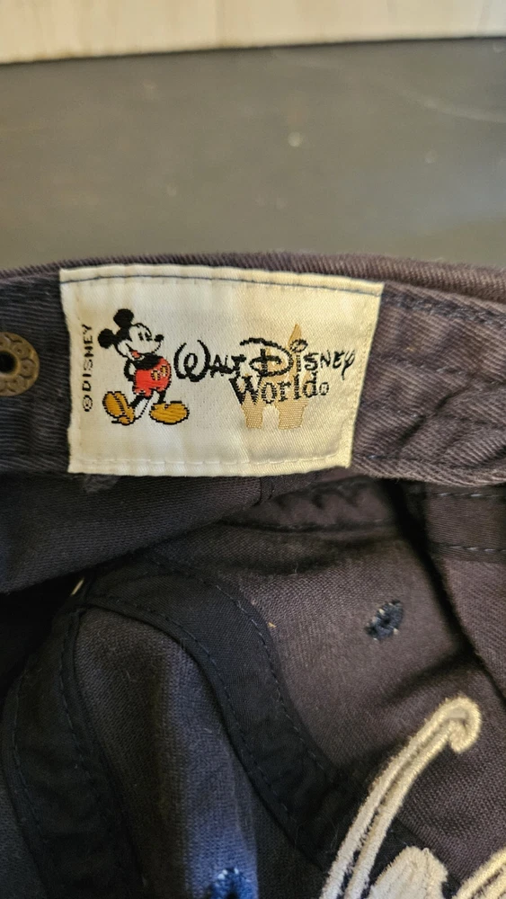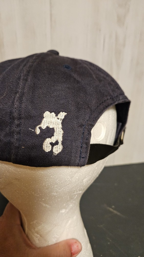 This Disney Golf Tee is a must-have for any Mickey Mouse fan who loves to play golf. Made of 100% cotton, this adjustable ball cap hat in navy blue is perfect for adult unisex wear. The hat features the iconic Mickey Mouse character and is an official Disneyana product. The hat is suitable for golf enthusiasts and is made in Taiwan. It is a great addition to any Disneyana collection and is perfect for wearing to golf events or just around town. Get your hands on this Disney Golf Tee and show off your love for Mickey Mouse while staying stylish and comfortable. This Hat is in used condition.