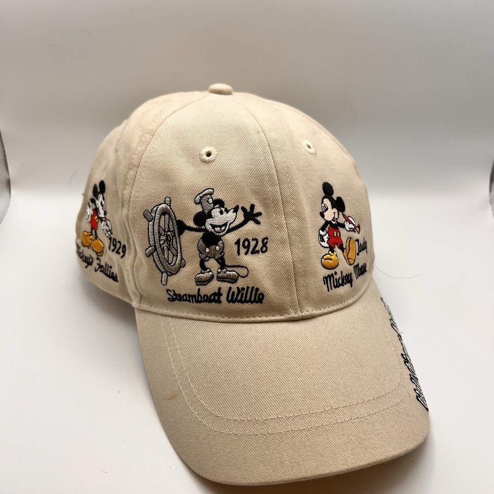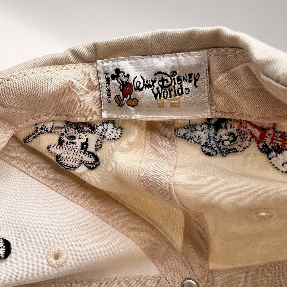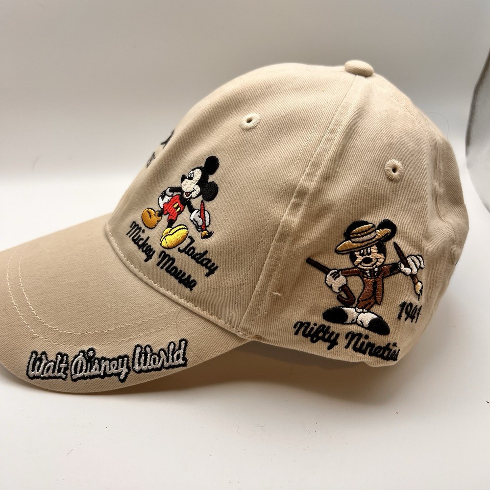This vintage Disney hat features an embroidered Mickey Mouse design, paying homage to the beloved character and Walt Disney World history. The beige color and adult size make it suitable for both men and women who are fans of the Disney franchise. Made in Taiwan, this hat is a nostalgic piece of contemporary Disneyana that captures the essence of Mickey Mouse in the Y2K era.