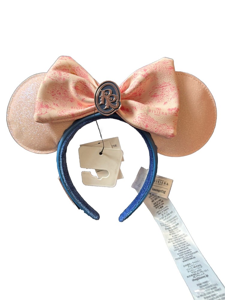 This elegant Disney Loungefly Minnie Ears headband is a Walt Disney World Riviera Resort exclusive! Featuring soft shimmery blush pink ears, a peach bow with red flecks, and a Riviera “RR” crest at the center, all on a sparkling blue headband. • Official Disney Loungefly WDW Riviera Resort Exclusive • Glittery pink ears with satin bow and “RR” logo medallion • Luxe blue headband with shimmering finish • Brand new with tags (NWT), never worn • From a smoke-free home • Trusted seller – 99.8% positive feedback • Ships via USPS First Class with tracking A must-have collectible for Disney Resort lovers and Minnie ear fans!