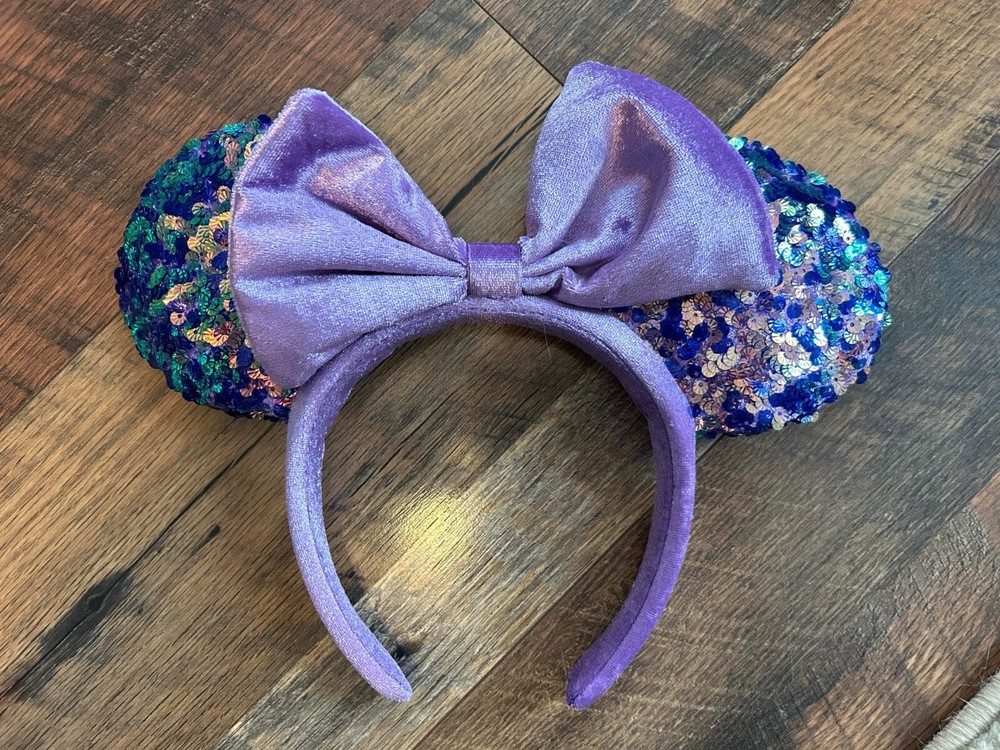 Add some sparkle to your outfit with this stylish Disney Mickey Ears Purple Sequined Headband. Perfect for Disney lovers of all ages, this headband features a classic Mickey Mouse ears design with green sequins that shimmer in the light. Made for adults, it is the perfect accessory for a day out at Walt Disney World or a fun costume party. This headband is from the Disney Franchise and is a part of the Disneyana Collectibles collection. The brand is Disney, and it falls under the category of Hats and Contemporary Apparel & Accessories. Get ready to turn heads with this beautiful headband, and show off your love for all things Disney!