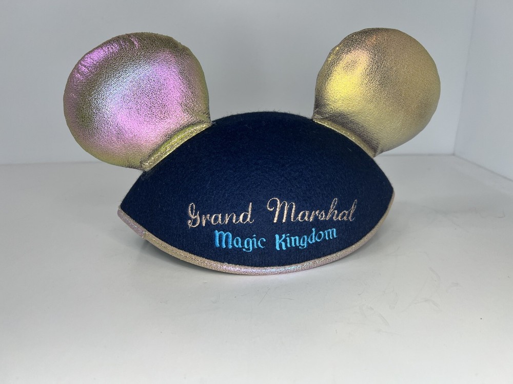 Disney Walt Disney World Magic Kingdom Mickey Mouse Ears Hat Embroidered “Grand Marshal Magic Kingdom” on the back Part of the Walt Disney World 50th Celebration Irredecent ears Navy hat Adult size Stored in a pet-free room. Smoke-free home. SHIPPING: This will ship in a recycled box or poly mailer I will mail your item within three (3) days after your payment is received. Items will be shipped to your eBay profile address only. Please confirm your address on your eBay profile before you bid on our item. Delays may occur due to weather and other restrictions beyond my control. Tracking numbers will be provided by eBay. RETURN POLICY: No returns will be accepted. All sales are final. Please make sure to read all descriptions and bid accordingly. Take a look at all the pictures I have provided. Item pictured is the item you will receive. If you have any questions, send a message and I will respond ASAP. QUESTIONS: If you have any questions, please reach out. I will be glad to provide any additional information prior to your bidding. THANKS: I appreciate your business. Thank you! INV: 5.25-1841