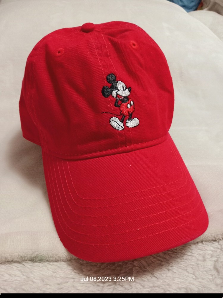 Disney Mickey Mouse Hat Embroidered Design Red Baseball Adjustable Adult Cap.