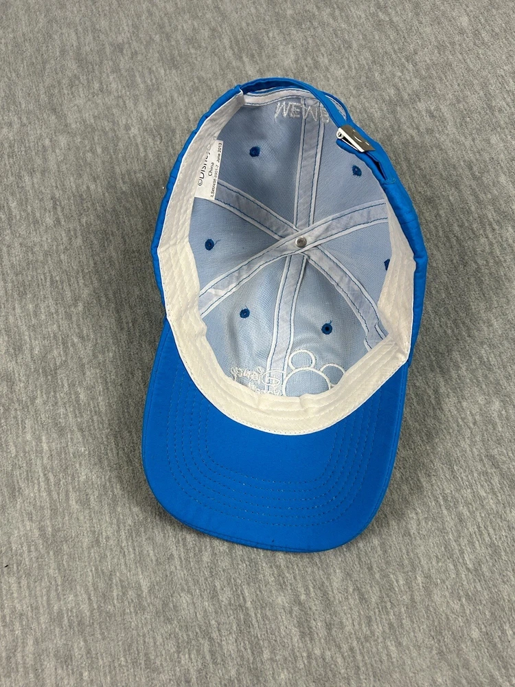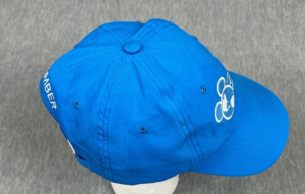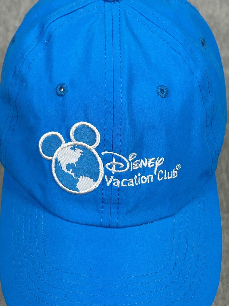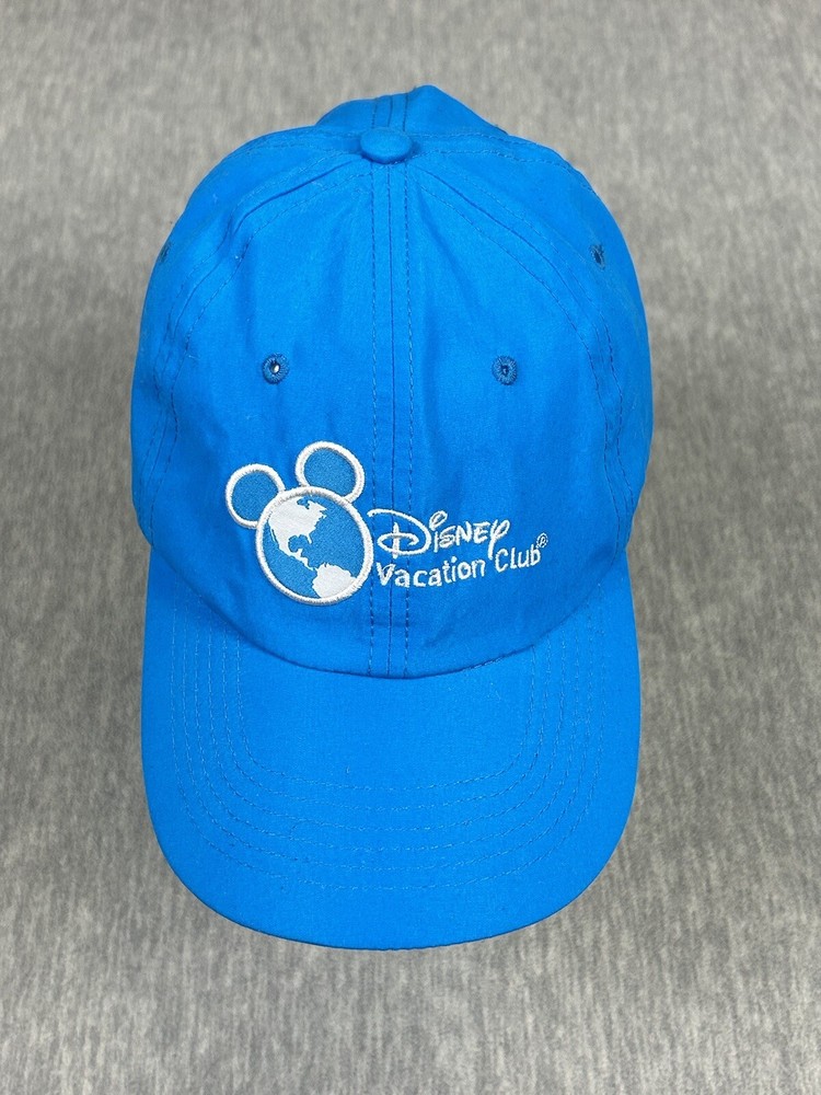 Walt Disney Mickey Mouse silhouette with the earth adult baseball hat, The hat is blue and is adjustable with a strap back adjustment and has Mickey and vacation club spell out embroidered on the lid and Member on the rear of the hat. See pictures for condition and reach out with questions. Ships USPS