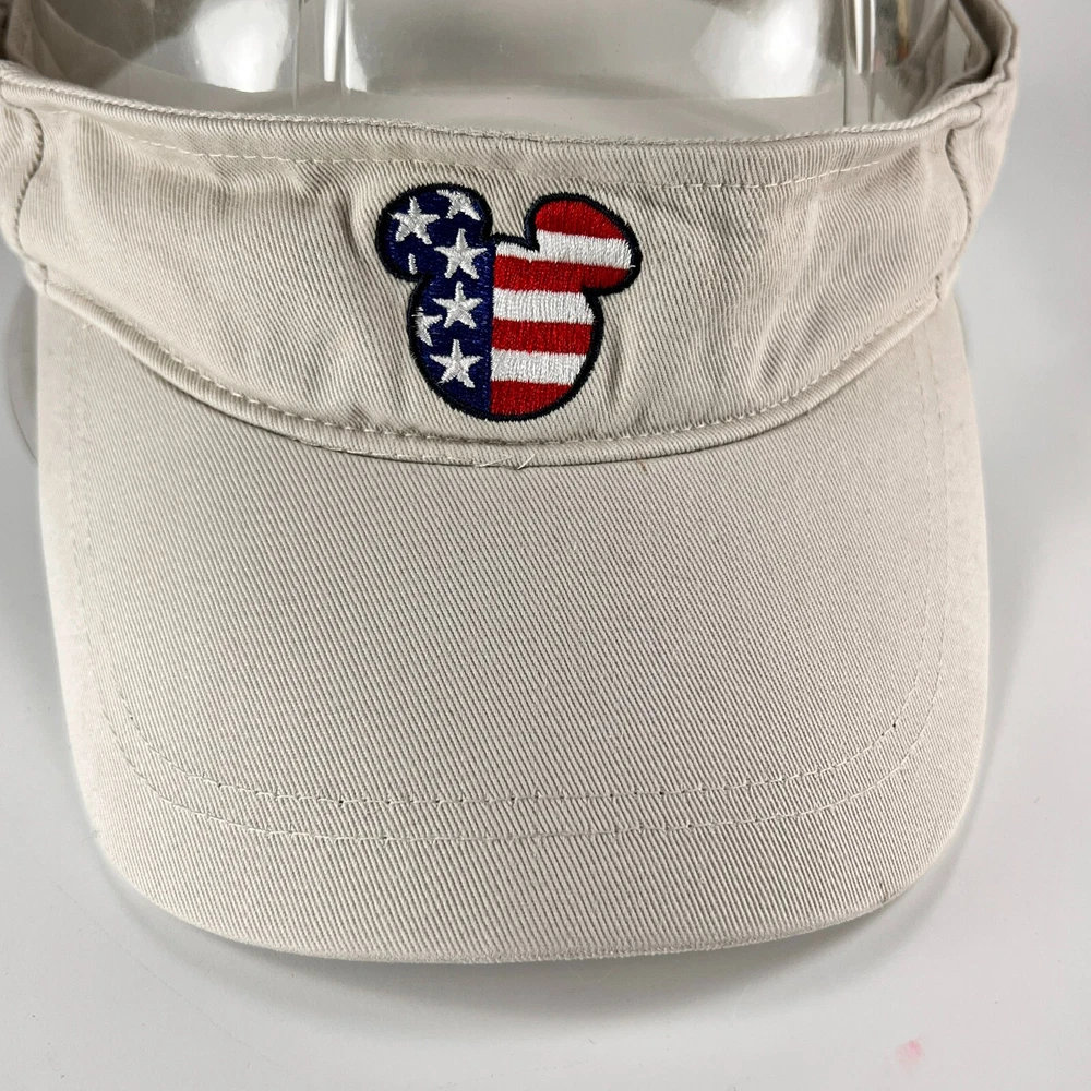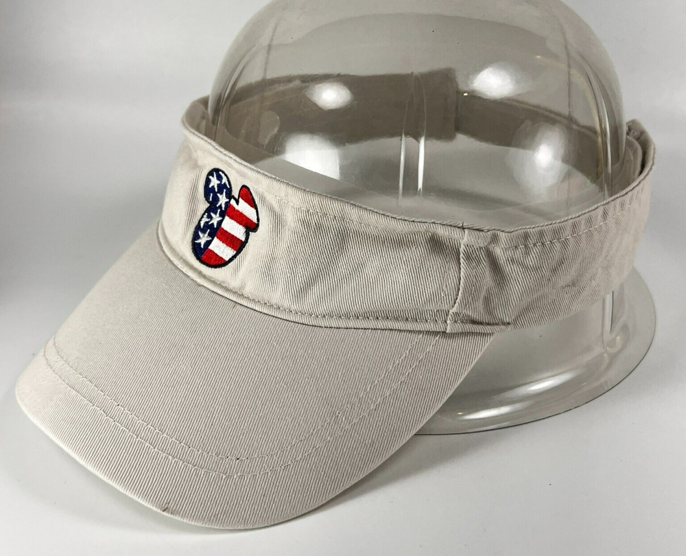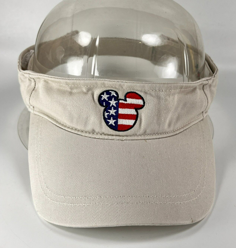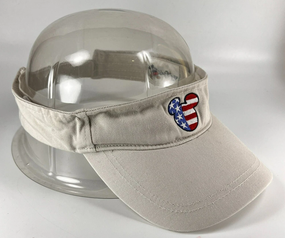 Gently used adult/men's Disney Mickey Mouse Theme Park Sun Visor Hat Cap Logo USA Flag Walt Disney World Disney Mickey Mouse Beach Vacation Fishing 100% cotton Made in China Embroidered logo Multicolor--shade of khaki, red, white and blue--see pictures for examples Cap Display Stand not included Shows normal wear--see pictures for examples Adjustable Strap back--see pictures for examples Has discolorations/fade--see pictures for examples We are not the original owners of this visor and do not know its history. Selling as is. From a smoke free, but not pet free home. Please email us with any questions. Thank you for looking! :) ~~W hether our item is new or previously loved we do our best to describe our items both visually, with our pictures, and verbally, with our written description, but we are not experts. The pictures provided are part of the description and may provide a better description than our written words have the ability to. We encourage our potential buyers to ask questions and request more pictures if necessary before purchasing. ~~ ~~C olors of item may vary in listing photos due to viewing screens/monitors, lighting, editing, camera, etc. ~~ ~~P er ebay policy, p ayment is due within 4 calendar days of an accepted offer or winning bid. If payment has not been received within the 4-day time frame the order will be cancelled. ~~ ~~W e will ONLY ship to the address on file with ebay. Before making a purchase, please ensure your address is correct. We may otherwise cancel the sale. ~~