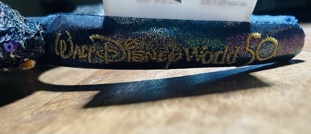 WDW 50th anniversary celebration ears Beautiful dark blue sequin ears with a flat bow covered in rhinestones Great for any collection or for park wear! Check out my other Disney items on sale!...