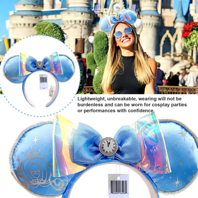 Disney- Park Cinderella Carriage Midnight Clock Headband Blue Minnie Mouse Ears Description : SIZE: 25CM wide * 21CM long 100% Brand New Size: One Size Suit Most Kids or Adult. Package included: 1 X headband About this project 1. Unique style: Unique design style, handmade, very shiny. 2. Comfortable to wear: The mouse ear headband is widened and made of anti slip materials, making the headband comfortable and not slipping. The overall design is beautiful and more shiny. 3. Widely used: Suitable for various occasions, whether you are attending birthday parties, cosplays, makeup balls, Christmas, etc., this headband is the perfect choice for you. 4. Perfect Gift: This unique bow headband is the perfect gift for a partner, friend, child, or sister. Attention: The images are the taken by the item, but because of the light when taking photos, the color of the photos is a bit different from the item. Thank you! 1. We accept payment via PAYPAL ONLY. 2. S&H will be determined based upon the SHIP TO address. 3. Please list your special requests (color, packages, etc.) in the PAYPAL NOTES SECTION when you make payment. 1.Items will be shipped within 1-3 business day when we received payment. 2.We only ship to confirmed ebay addresses. Your ebay address MUST MATCH your Shipping address. ★If there are any problems with our products, Please feel free to contact us. We will always here to solve them for you. You don't need to contact Ebay or Paypal. And please DO NOT leave us Neutral / negative feedback. It won't help the problem to be solved. And it is the worst hurt to a seller. We should try our best to make a happy easy transaction. ★If you are satisfied with our products and our service, please tell your friend and leave us positive feedback. If you are not satisfied with our products or service, please DO tell us. ★ebay Money Back Guarantee: After receiving the item, you could contact us within 30 days. Get the item you ordered or get your money back. Covers your purchase price and original shipping. Why choose from us? 1.100% Authentic. 2.Brand new (Unless the description says used), High quality,Low Price. With all Original parts and authentic,Original manufacturer's serial numbers intact. 3.Intimate, fast customer service.