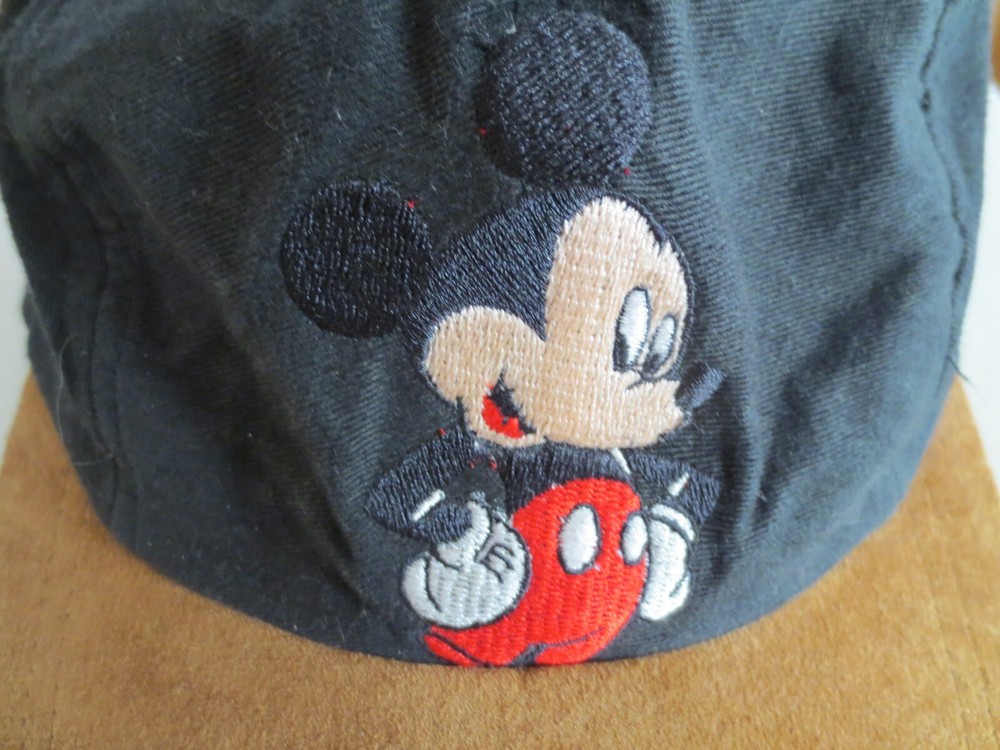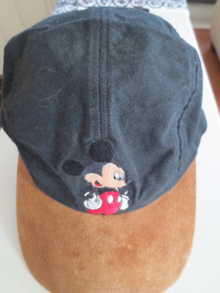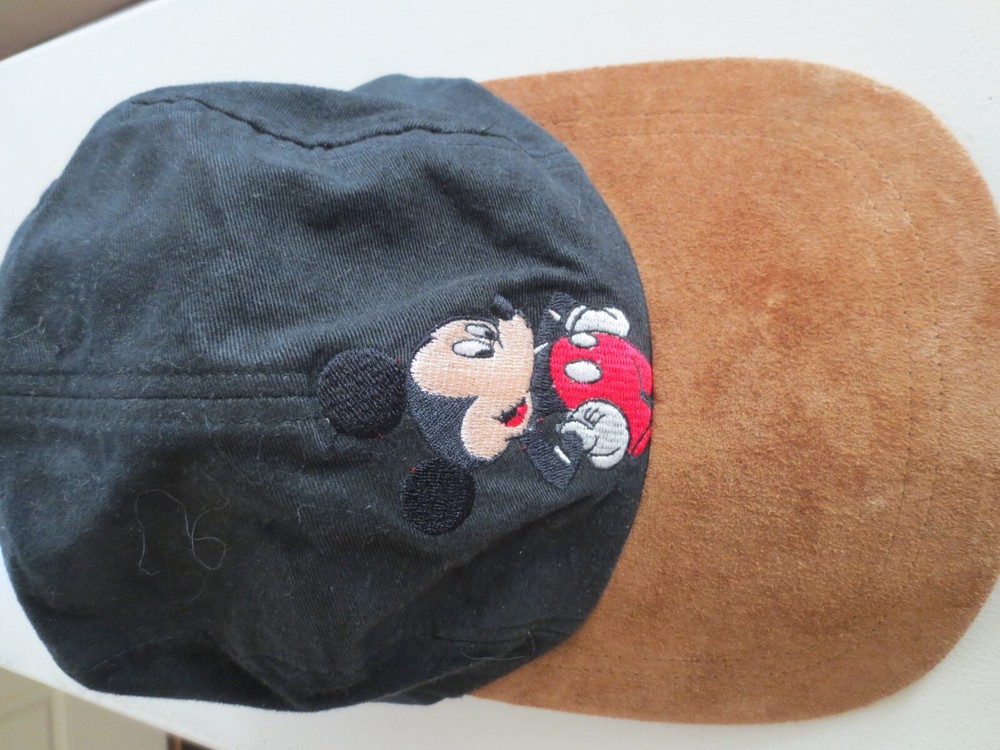 Great "Mickey" Base Ball Style Hat - Black Cotton Body With 100% Tan Suede Brim - Black Elastic Rear Head Band "Mickey" In Red Letters On The Back Gently Used - Very Good Condition!!!! Clean Home, No ...