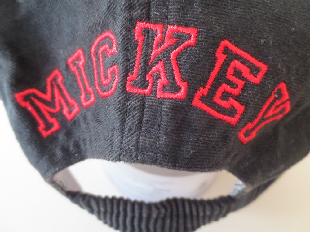 Great "Mickey" Base Ball Style Hat - Black Cotton Body With 100% Tan Suede Brim - Black Elastic Rear Head Band "Mickey" In Red Letters On The Back Gently Used - Very Good Condition!!!! Clean Home, No Smoking