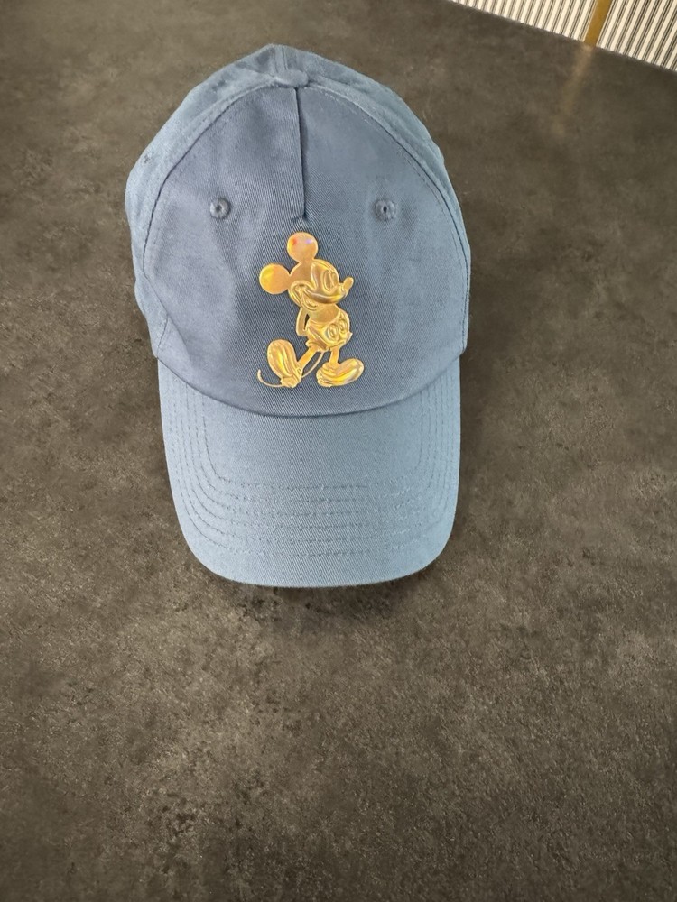 Celebrate the 50th anniversary of Disney World with this limited edition Blue and Gold Mickey Mouse baseball cap hat. Featuring the iconic character Mickey Mouse, this adjustable hat is a must-have collectible for any Disney fan. Made by Disney themselves, this unique souvenir from Walt Disney World is a perfect addition to any theme park memorabilia collection. With a contemporary design perfect for 2022, this special hat commemorates a magical half-century at Disney Parks.