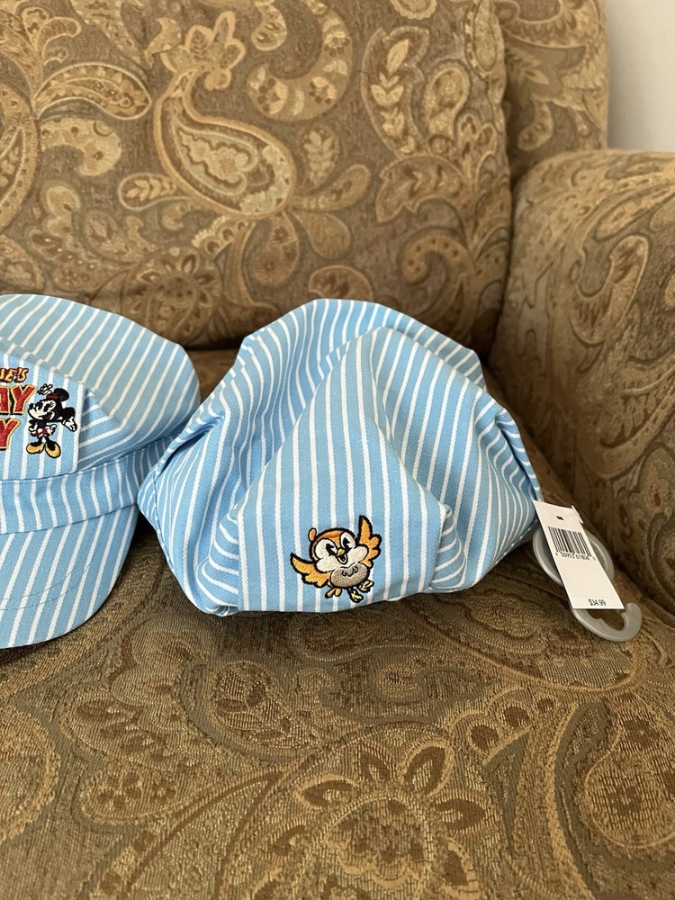 This adorable conductor hat is a must-have for Disney fans! The blue and white stripes are so cute, and the quality is fantastic—brand new with tags. Perfect for theme park trips or adding a fun touch to your Disney collection. Love the Mickey and Minnie Railway theme!