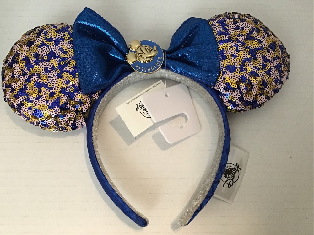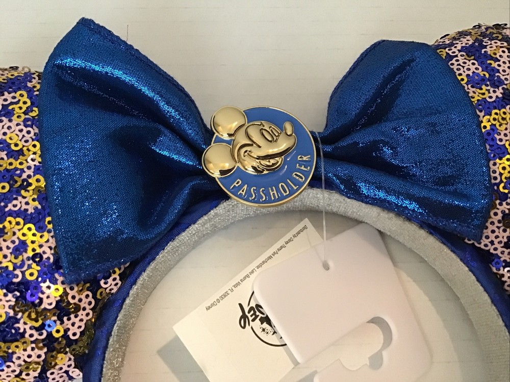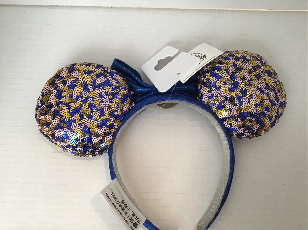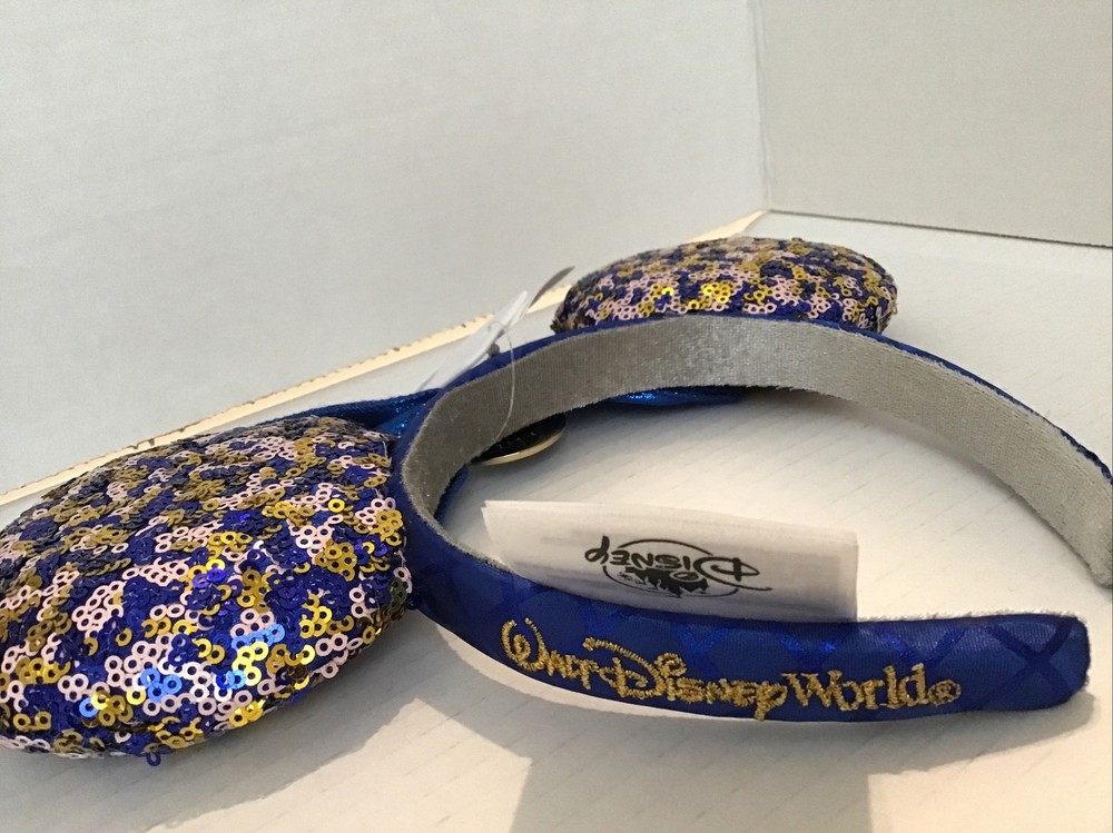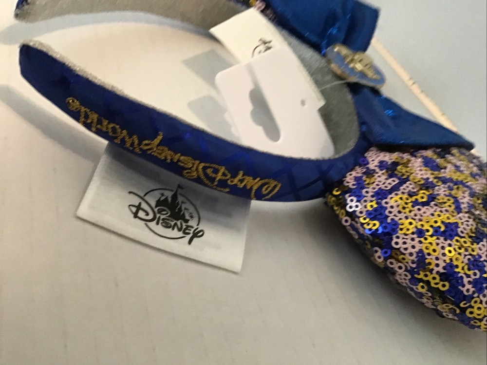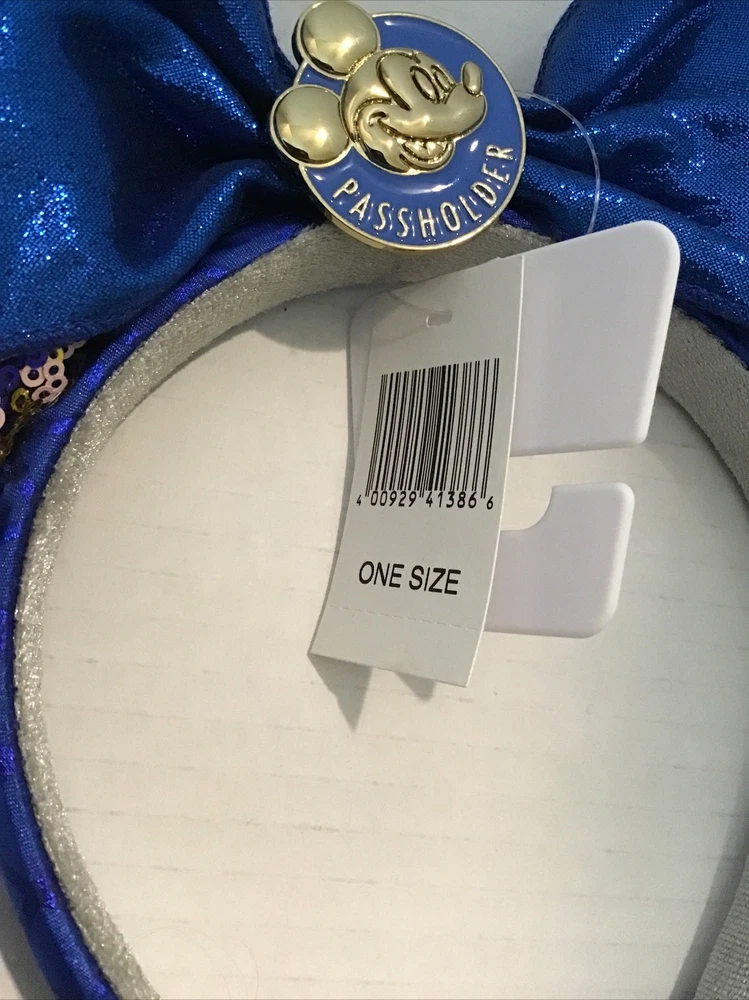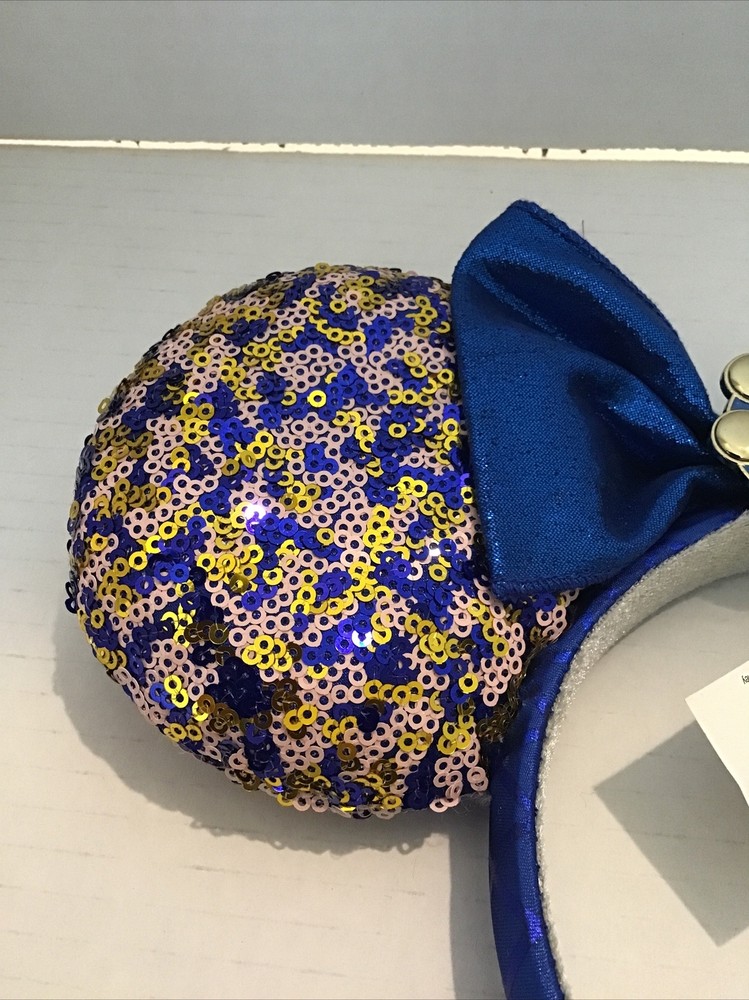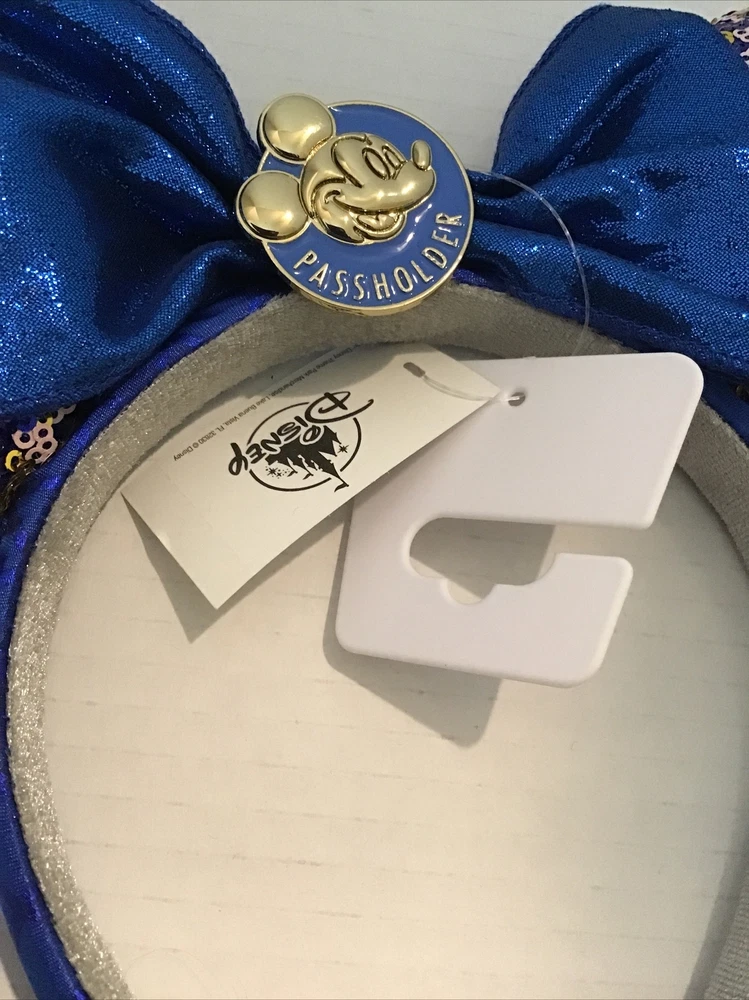 Enhance your Disney Parks experience with this Minnie Mouse sequin ears headband, exclusively made for Walt Disney World Passholders. The blue headband features sparkling sequins that create a shimmering effect, making it a perfect accessory for any outfit. The ears are topped off with a sparkling bow, which adds a touch of glamour to your look. This headband is perfect for collectors and Disney enthusiasts alike. It is suitable for both men and women, making it a great gift for any Disney fan. The headband is brand new with tags, ensuring that you receive a pristine product. Brand new with tags. Safely stored in a smoke free environment. Purchased at Disney World.