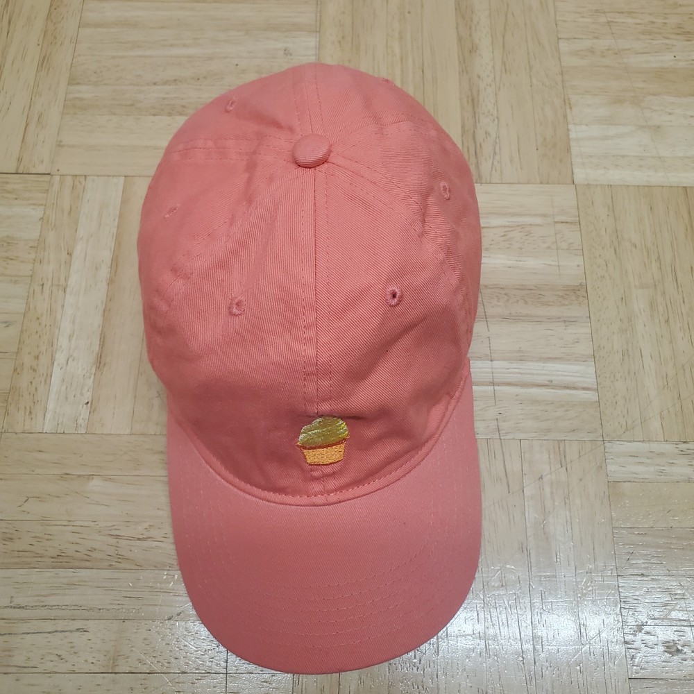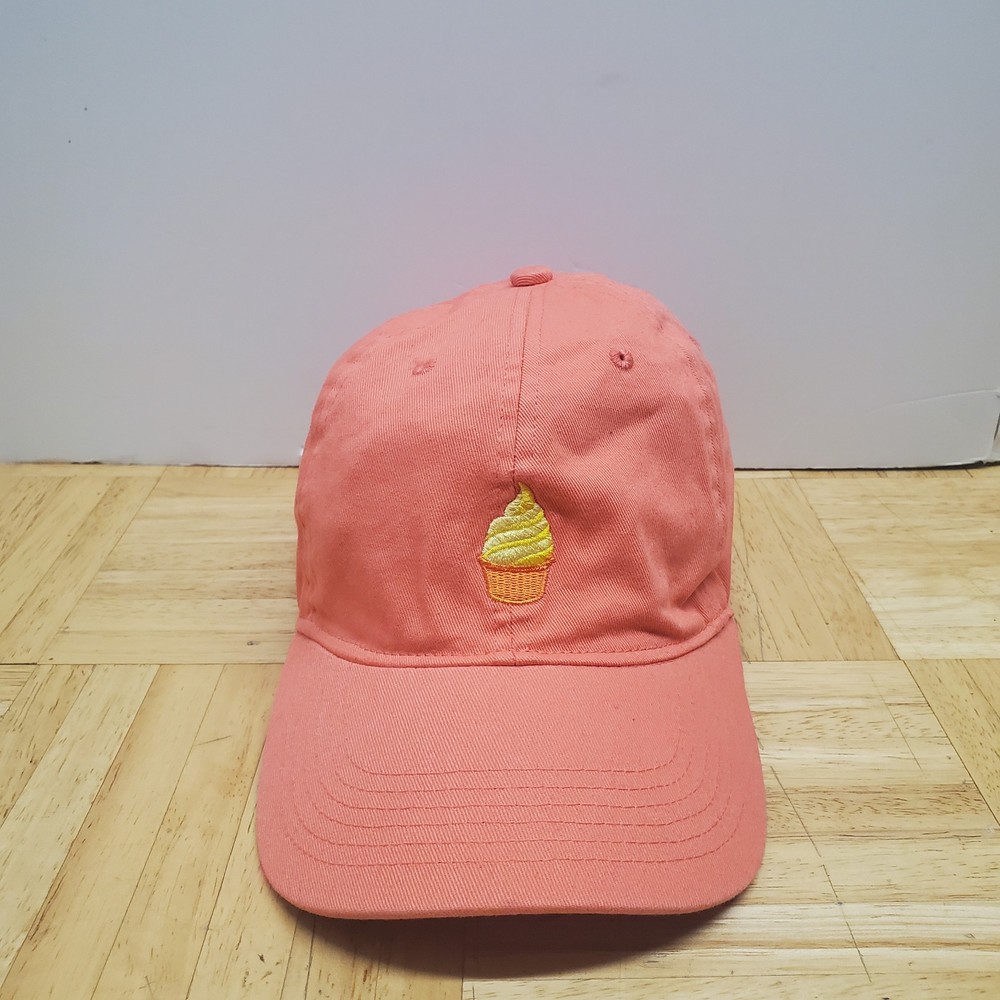 Disney Parks Authentic Original Pink Hat Yellow Ice Cream Cupcake Buckle Cap Cap looks good with no stains. It is adjustable. Please see photos for more details and condition.