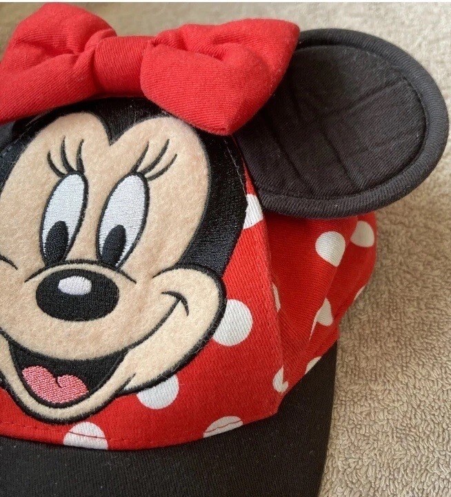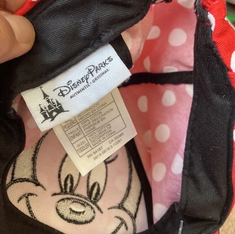 Disney Parks Authentic Original Walt Disney World Minnie Toddler Hat. No Tag; did not get to wear it. Plastic Tag piece is still connected. Did wash, handle and store though. There is a little pilling at Minnieʻs face per the type of material like felt. There is a pin hole as pictured at the Plastic. Little Flat from storage. Size marked Toddler. Has Elastic band at the back of head but measures about 18” around the inside. Check condition and sizing; no returns.