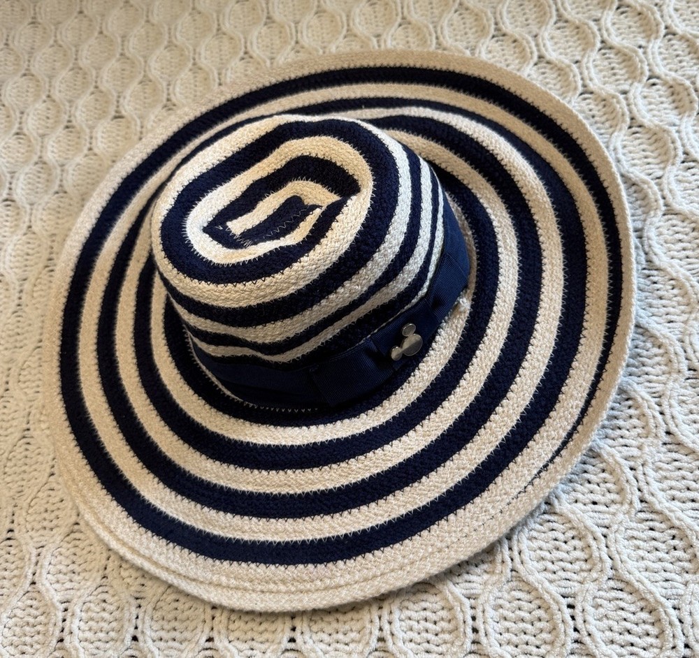 Disney Parks Authentic Striped Navy and Cream Wide Brim Hat. Se envió con USPS Ground Advantage.