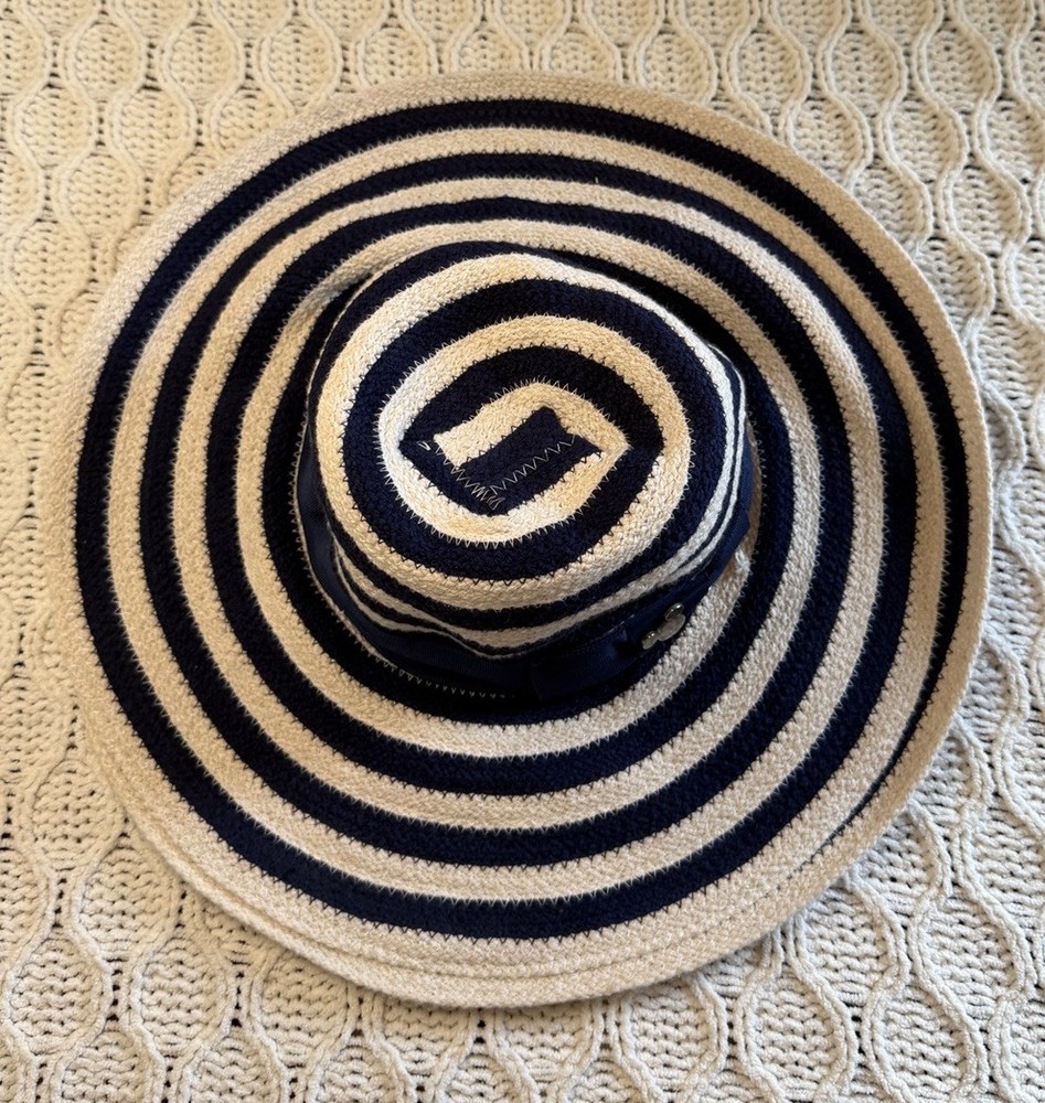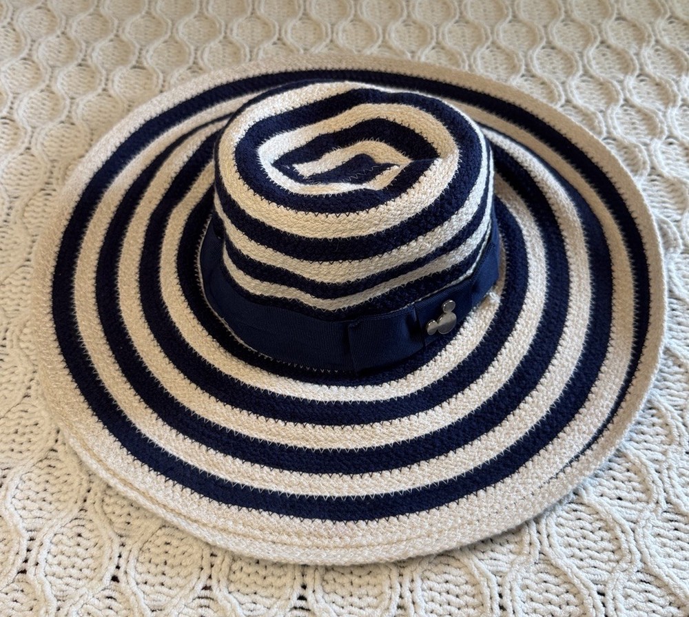 Disney Parks Authentic Striped Navy and Cream Wide Brim Hat. Se envió con USPS Ground Advantage....