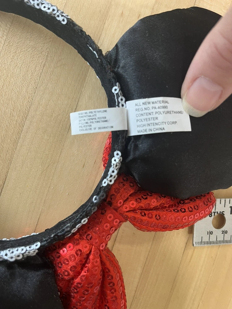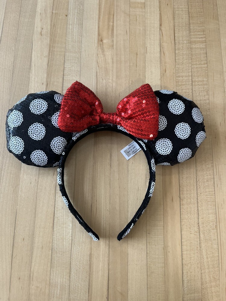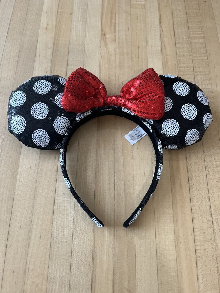 Show off your love for Minnie Mouse with this Disney Parks black sequin red bow white polka dot headband. Perfect for adults, teens, and kids, this headband is a must-have for any Disney fan. The headband features a cute and stylish design that will make you stand out from the crowd. Must have this featuring the iconic Minnie Mouse, this headband is perfect for any Disney Parks convention or event. The black, red, and white polka dot design is eye-catching and unique, making it a great addition to any Disneyana collection. Suitable for unisex wear, this headband is one size fits most kids or adults. Get yours today and show off your love for Minnie Mouse!