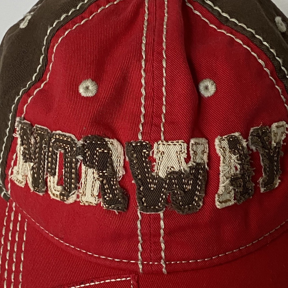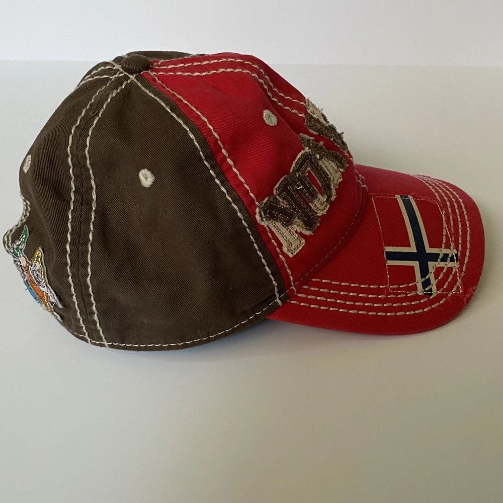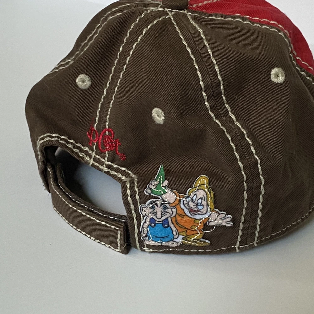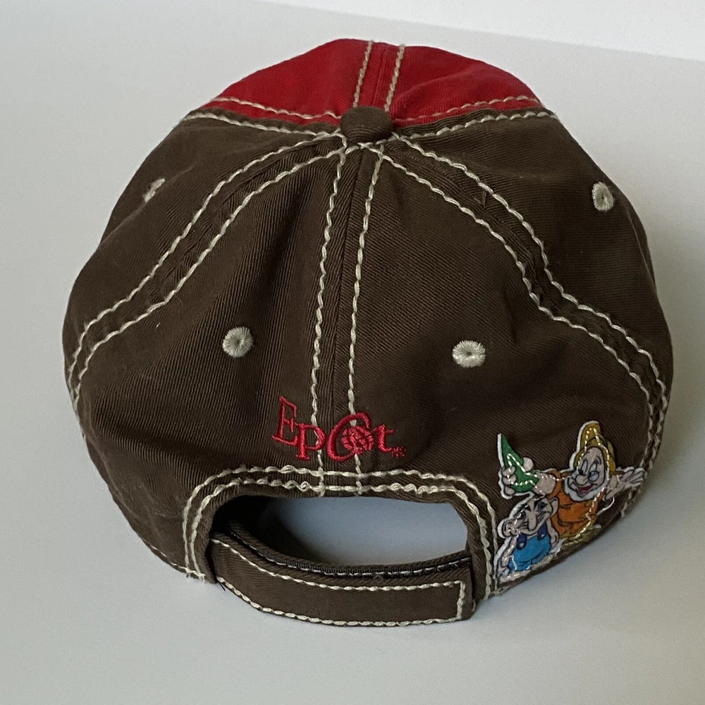 Disney Parks Epcot Norway Baseball Hat Cap Red and Brown. Has a Snow White Dwarf Doc on the back. Excellent used condition, only once once or twice.