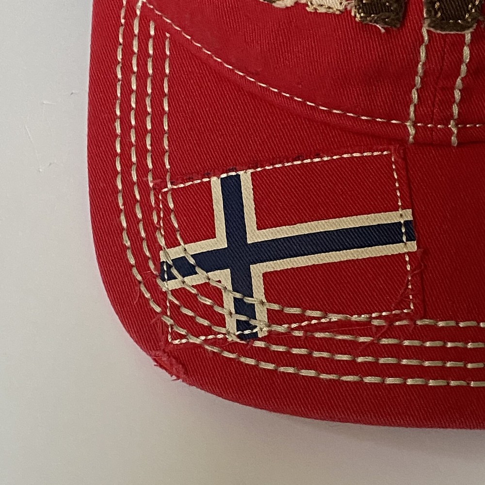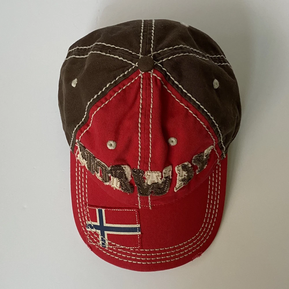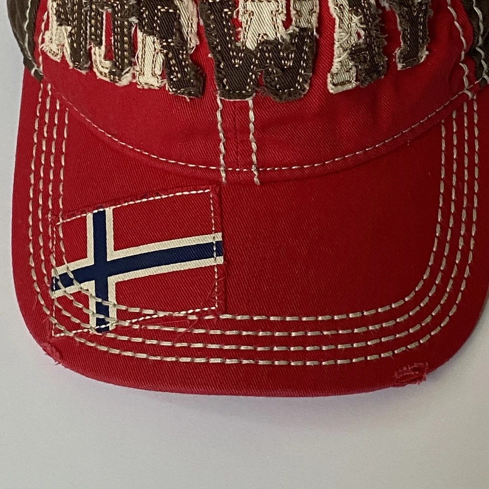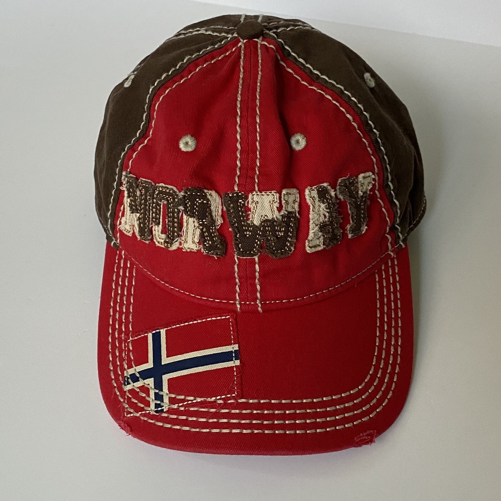 Disney Parks Epcot Norway Baseball Hat Cap Red and Brown. Has a Snow White Dwarf Doc on the back. Excellent used condition, only once once or twice.