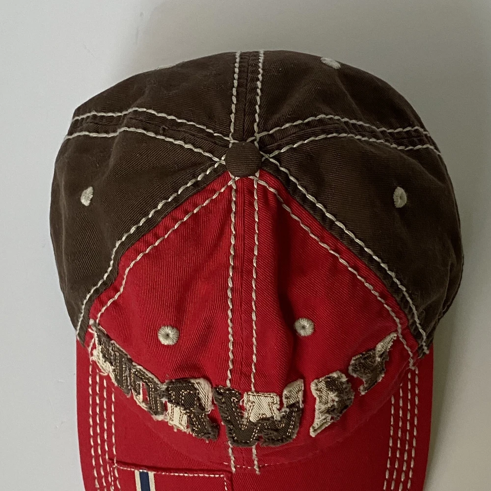 Disney Parks Epcot Norway Baseball Hat Cap Red and Brown. Has a Snow White Dwarf Doc on the back. Excellent used condition, only once once or twice....