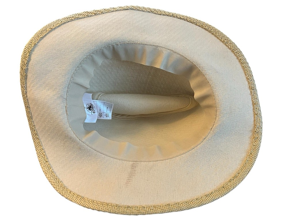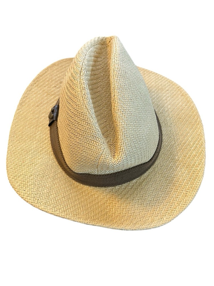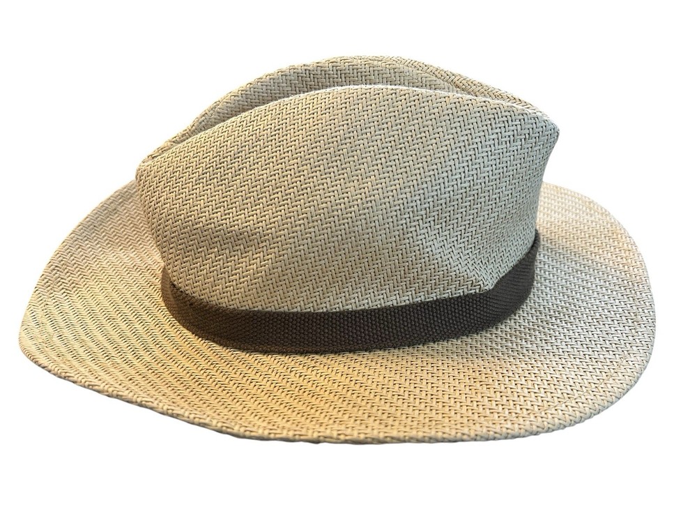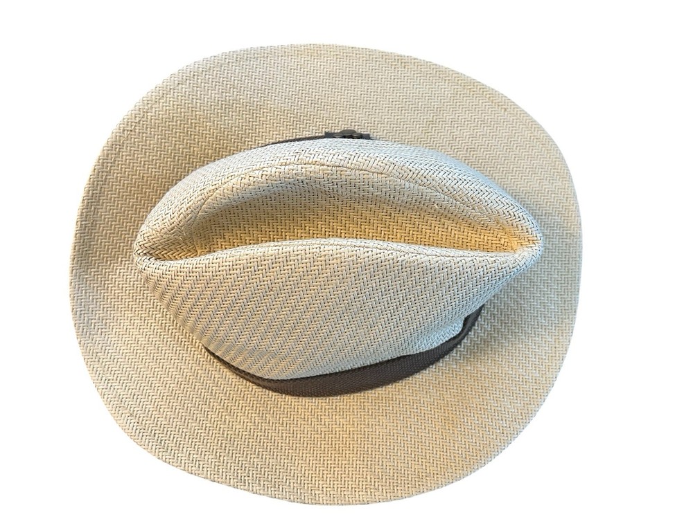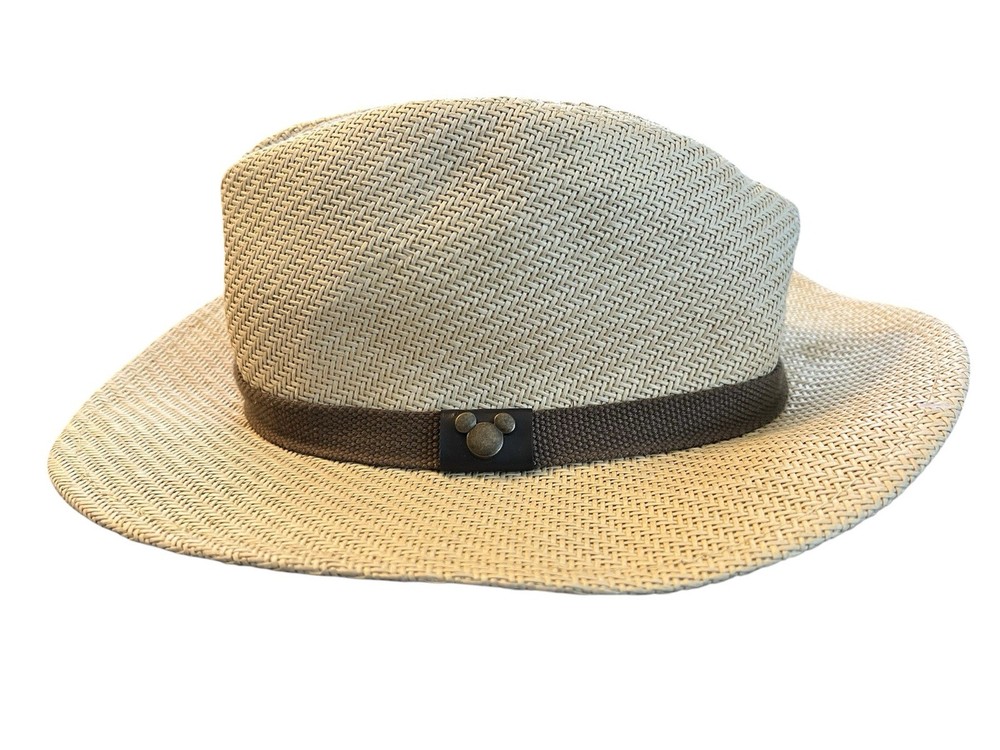Disney Parks Fedora Hat Adult Size Woven Beige Brown Band Mickey Mouse Icon EUC