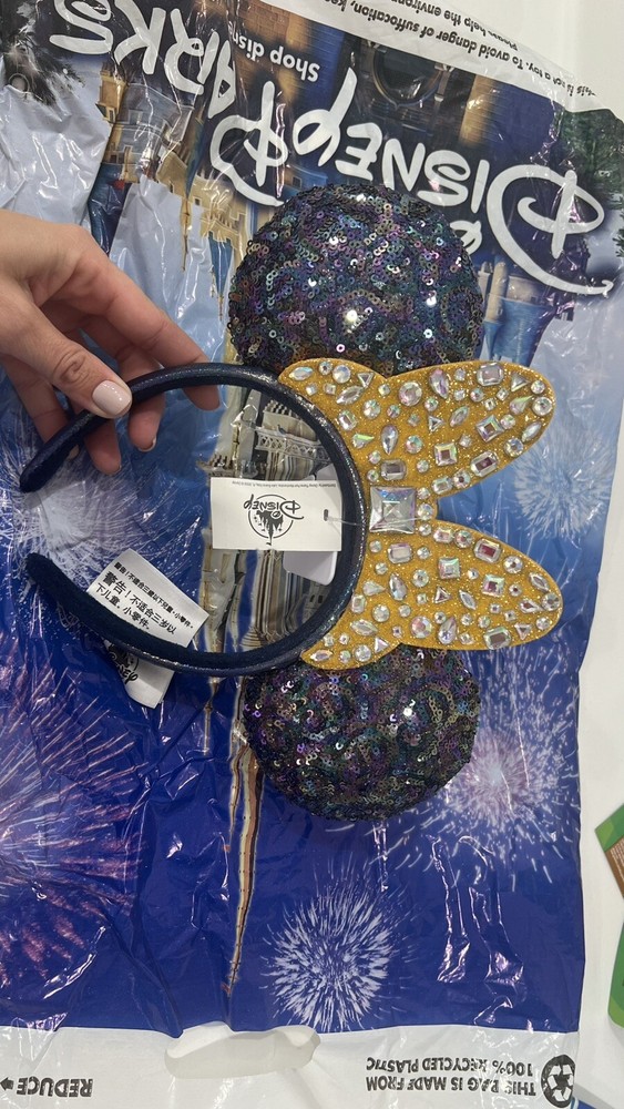 Celebrate the 50th anniversary of Walt Disney World with these stunning gold bow Minnie ears headband. Adorned with dazzling jewels, this unisex headband is perfect for any Disney fan. The headband features the iconic red and white polka dot design that is synonymous with Minnie. This collectible item is perfect for adding a touch of Disney magic to any outfit. Suitable for adults, this headband is a must-have for any Disneyana collector. Brand new with tags. Photos are part of the item description. Please ask questions before buying. All sales are final.