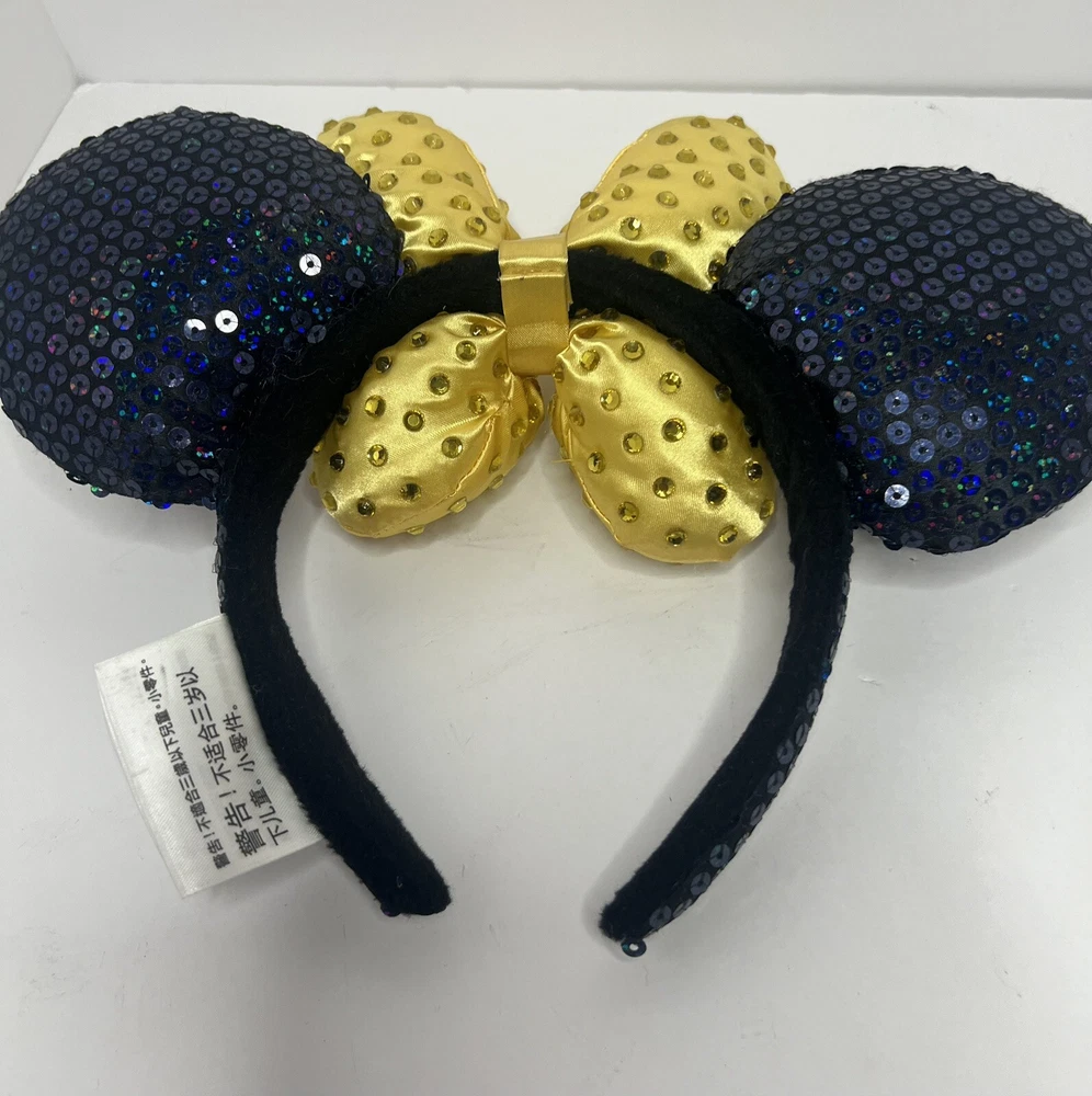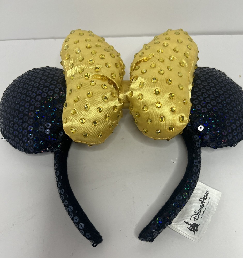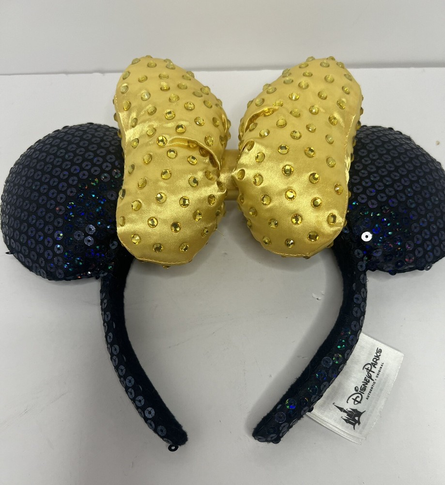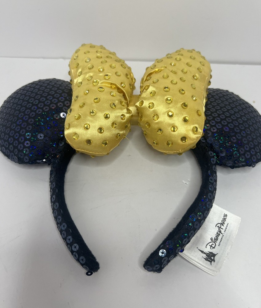Show off your love for all things Disney with this stunning Disney Parks Gold Bow 50th Anniversary WDW Minnie Ears Jeweled Headband from 2021. This beautiful headband features a gold bow with a jeweled Minnie Mouse ear design, perfect for adding a touch of Disney magic to any outfit. Suitable for adults of any gender, this headband is a must-have for any Disney fan. Represent your favorite theme park with this contemporary collectible and add it to your Disneyana collection. This headband is perfect for wearing to special events or just everyday wear. Don't miss out on this opportunity to show off your love for Disney in a stylish and unique way.