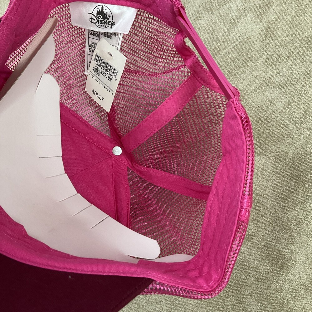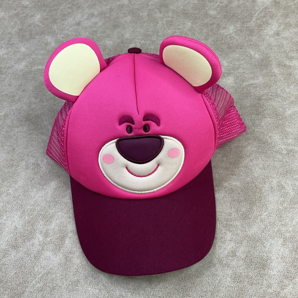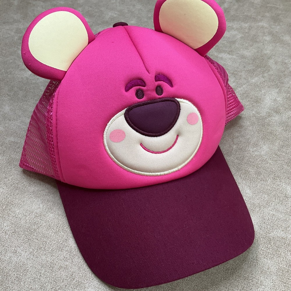 New with tags Brighten up your Disney collection with this playful Disney Parks Hat featuring the beloved Lotso Bear from Toy Story. The hat comes in a charming pink shade that's sure to stand out, especially with Lotso's friendly face and ears adorning the design. It's an adjustable snapback, ensuring a comfortable fit for any head size, which makes it a great accessory for women who love to add a touch of whimsy to their outfits. Crafted with care and detailed embroidery, this baseball hat embodies the spirit of Disneyana and is a must-have for fans and collectors. The hat is contemporary, manufactured in 2021, and holds the quality expected from the Disney Parks brand. Whether you're visiting the theme parks or just looking to add some magic to your everyday wear, this Lotso Bear hat is a delightful addition to any Disney enthusiast's wardrobe.