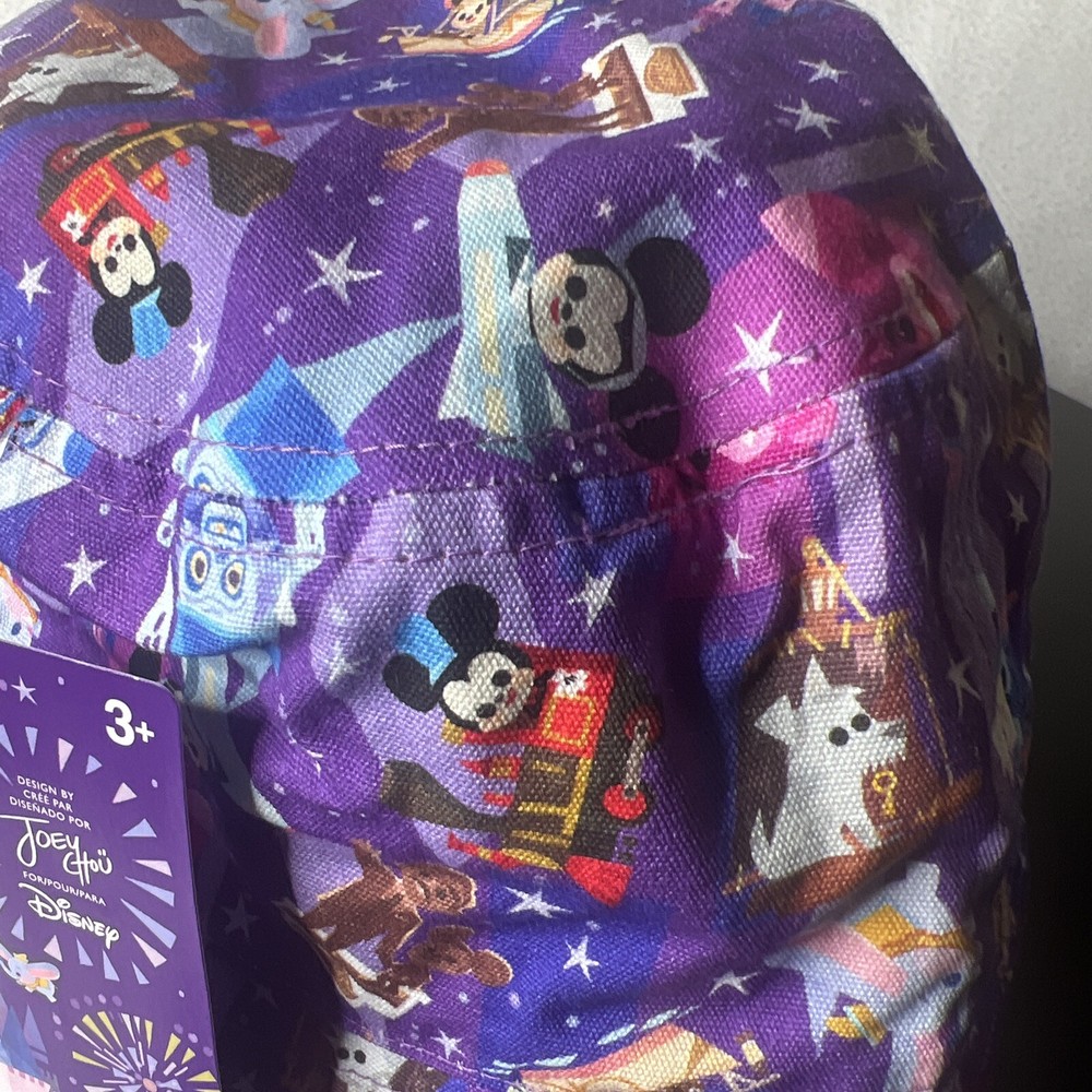 This Disney Parks Joey Chou Reversible Bucket Hat features the iconic character Mickey Mouse and is a perfect souvenir for Disney fans. The hat is brand new and has never been worn. It was designed by artist Joey Chou and is a great addition to any Disneyana collection. The hat is part of the contemporary Disney franchise and is a theme park souvenir from Walt Disney World. The year of production is 2023.