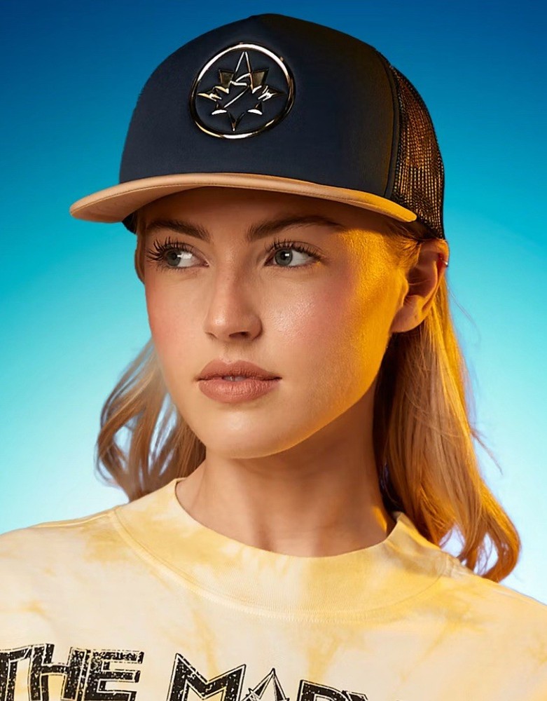 Disney Parks MARVEL Collection The Marvels Baseball Hat Metallic Insignia NWT Shipping in a poly bag includes tracking from a pet and smoke free environment.