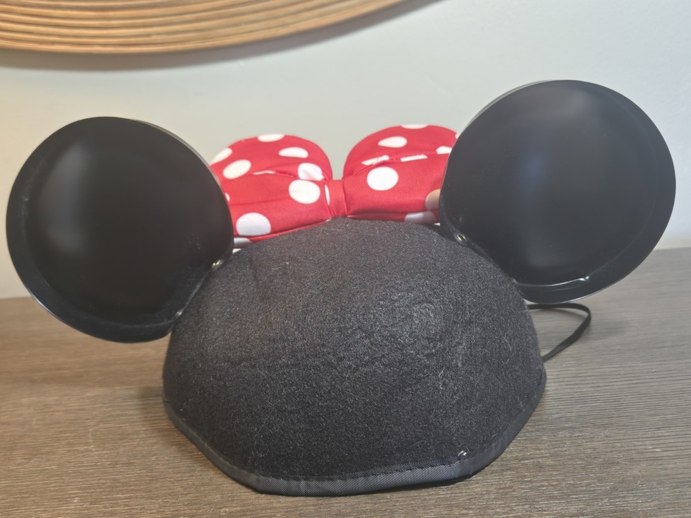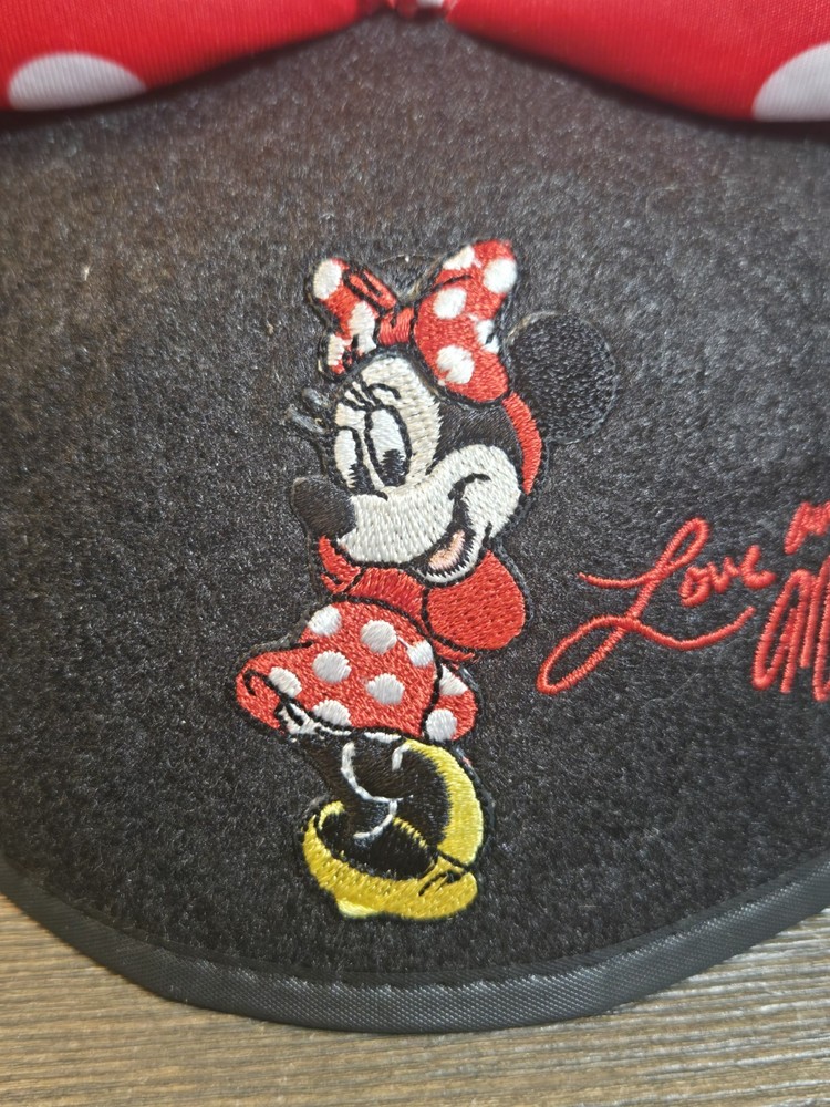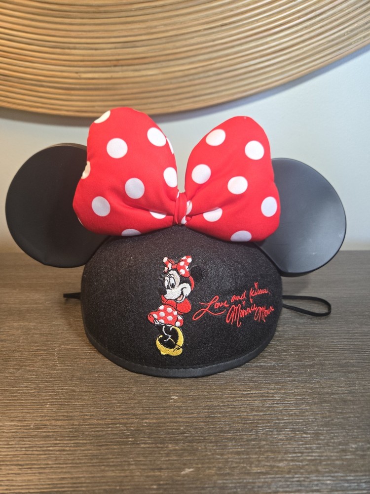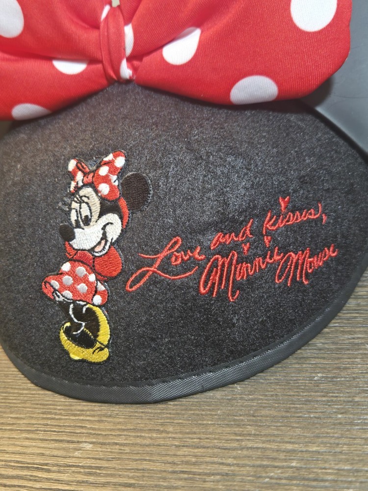 This product is a red and white embroidered hat with a polka dot bow design, featuring Mickey Mouse ears. It is a youth-sized, one-size-fits-all hat made in Thailand and suitable for unisex wear. The hat is part of the Disney Parks collection and features the Love and Kisses design, making it a perfect accessory for Disney fans and collectors.